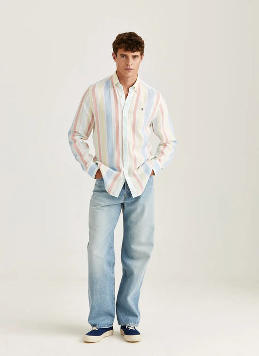 Morris Skjorta Happy Linen Stripe -Classic Fit