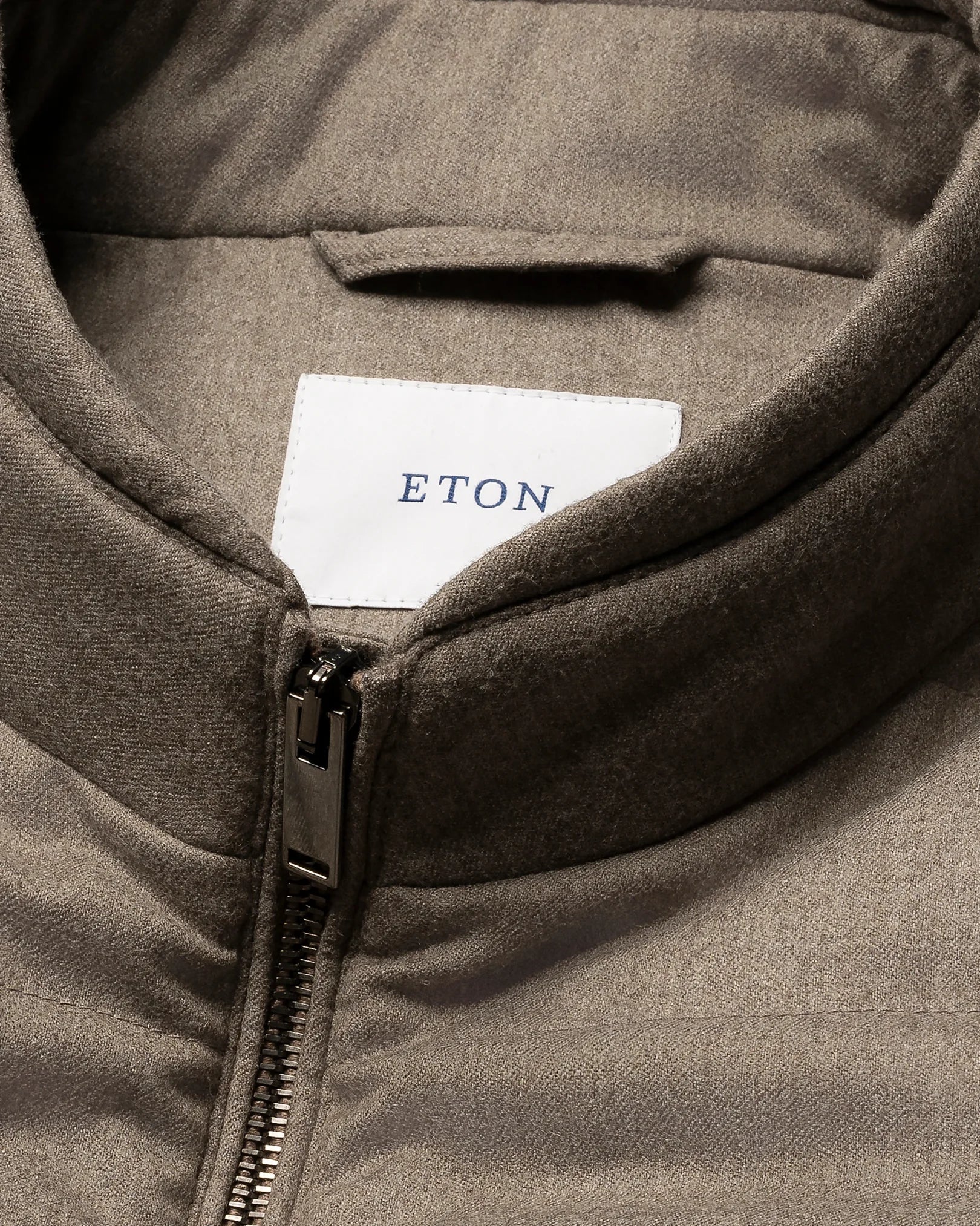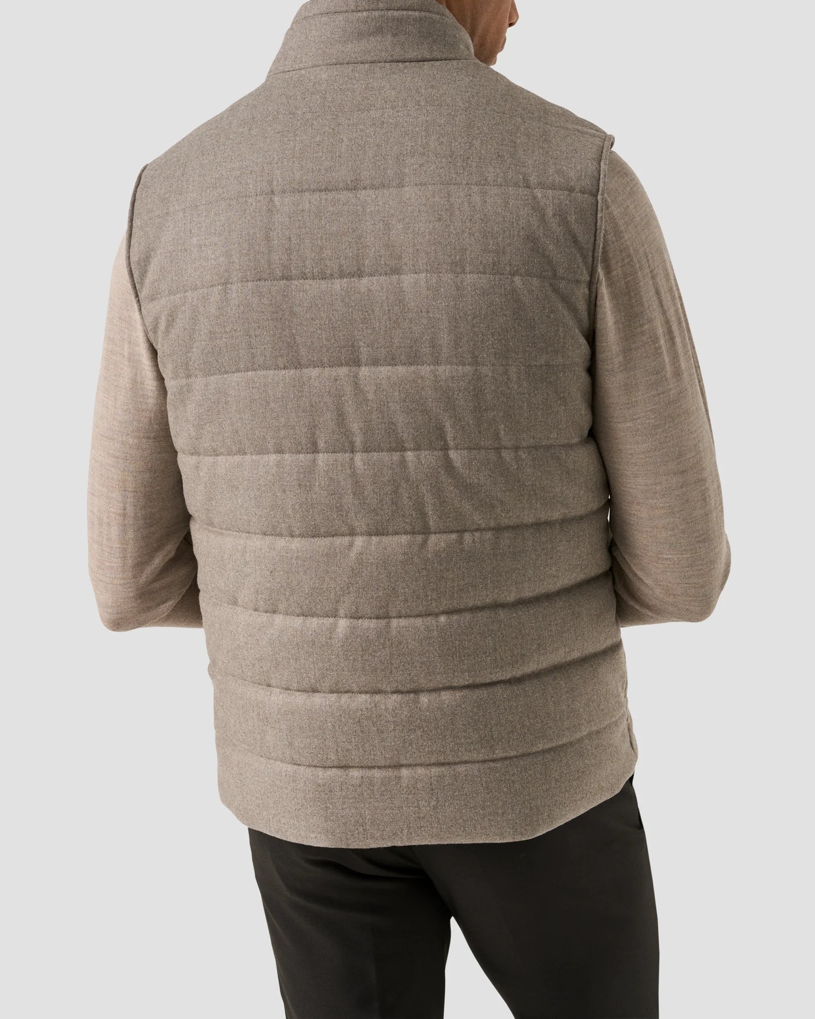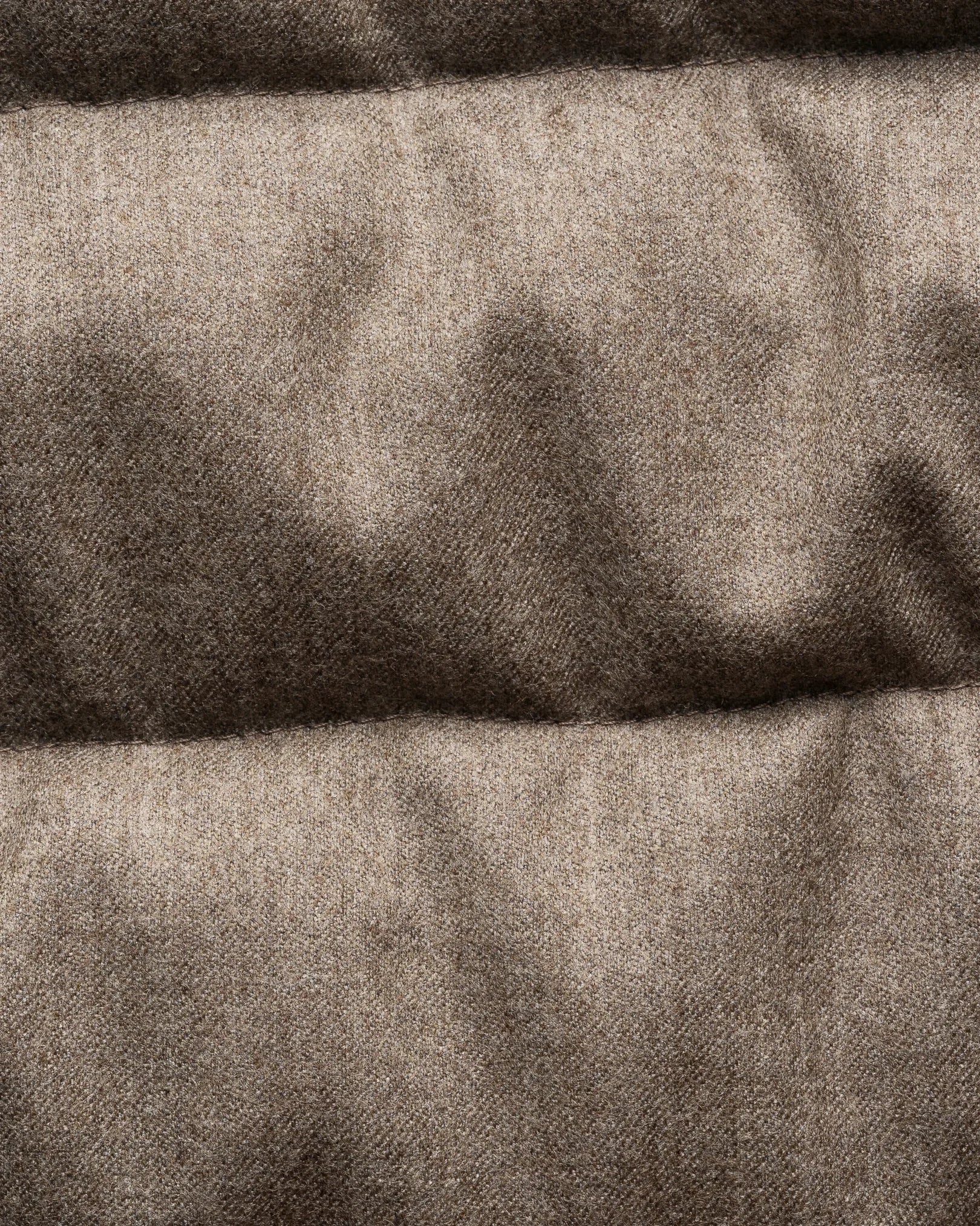 En förfinad version av friluftsvästen, sydd i mjuk ull med vaddering för extra värme. Ett stilrent framstycke, diskreta sidofickor och detaljer i matchande nyanser ger en snygg finish. Perfekt att bära över en skjorta eller ett stickat plagg i kyligare perioder mellan årstiderna. • Italiensk ullflanell från Vitale Barberis Canonico