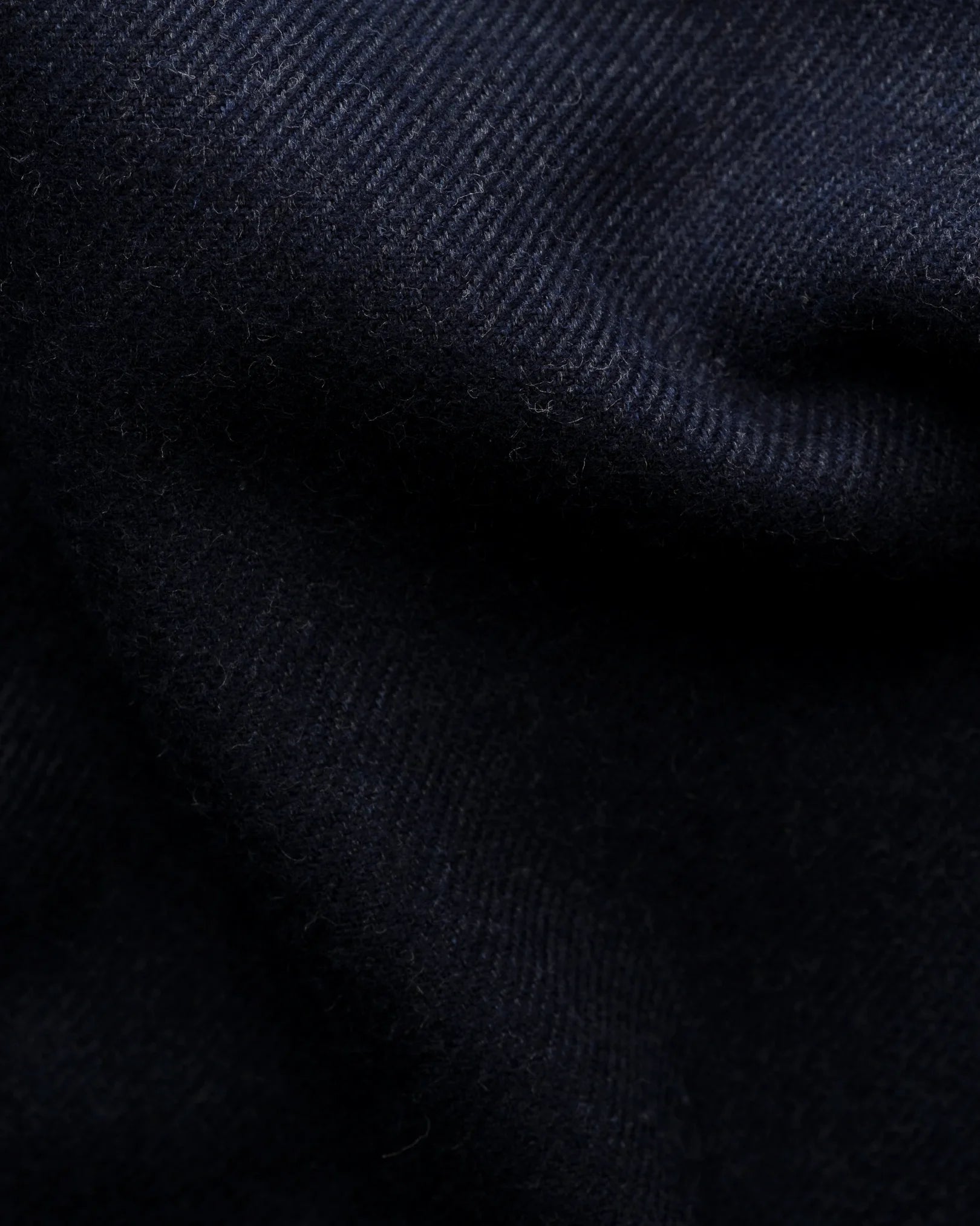 En casualskjorta i 100 % bomullsflanell, vävd i Italien av dubbeltvinnat garn och mjukt borstad för en oerhört mjuk och kashmirliknande känsla. Den solida designen framhäver twillstrukturen och de fylliga melange-tonerna. Skjortan har benfärgade knappar, spread-krage och böjd fåll. Passformen är Casual Fit, vilket gör den lätt att styla, både instoppad och oinstoppad.
