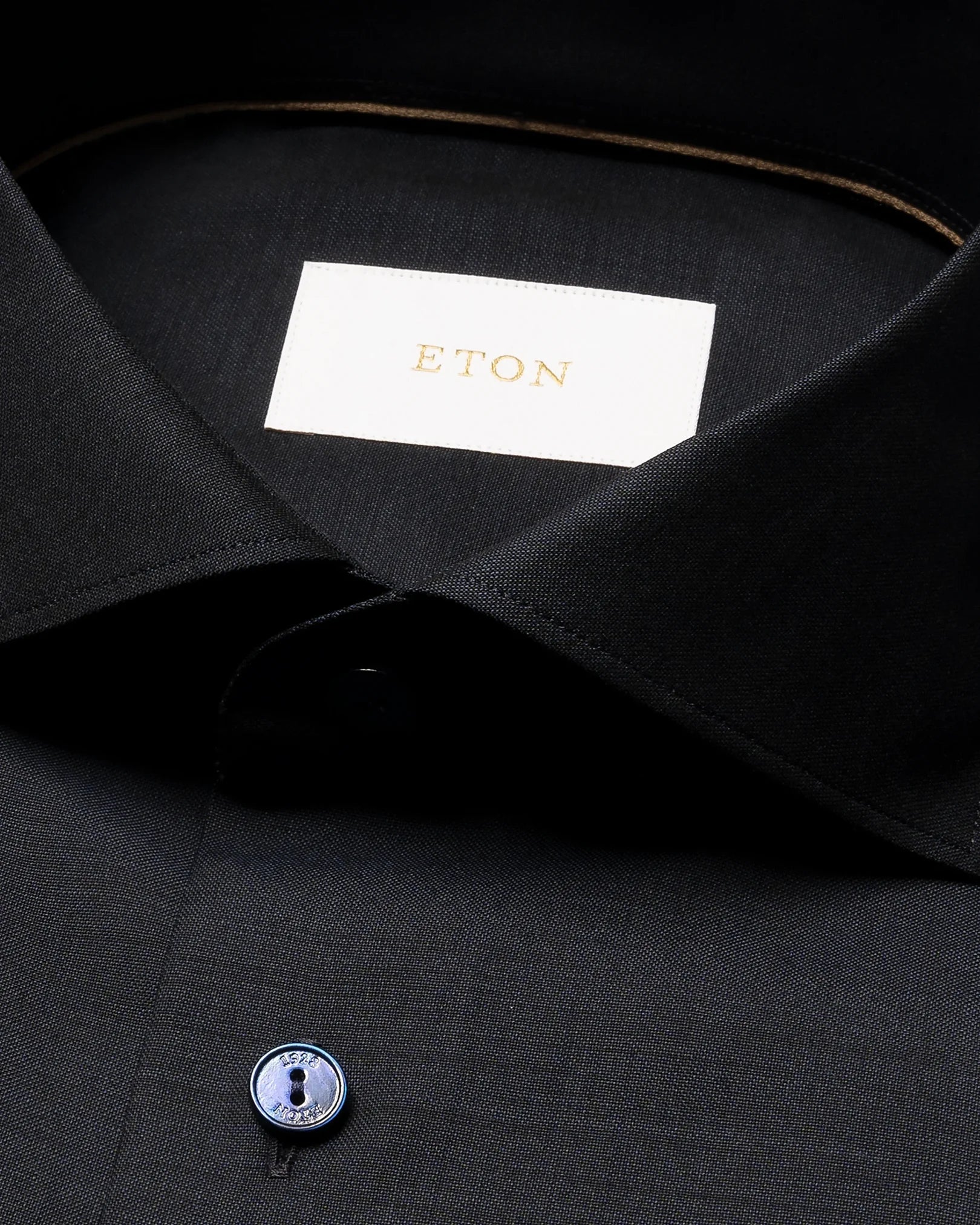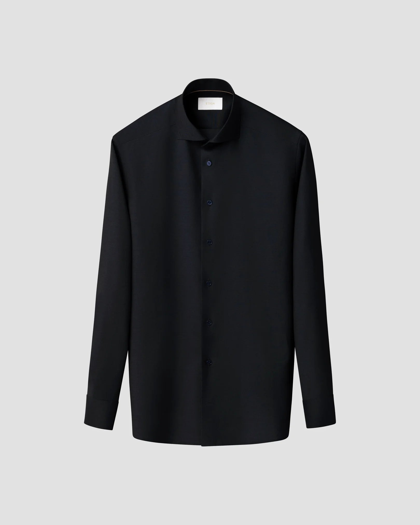 En enfärgad businesskjorta sydd i extra mjuk 100 % Super 120 merinoull, vävd i Italien. Den är värmereglerande med naturlig stretch och exceptionell andningsförmåga. Skjortan är strykfri och kan tvättas i maskin. Med pärlemorknappar och strukturerad textur är den en elegant variant på smart casual-stilen.