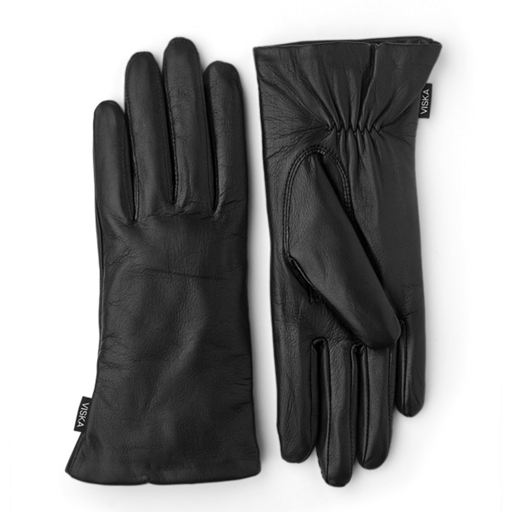 Nätt skinnhandske i lammnappa från Viska. Handsken har ett tunnt stickat ullfoder samt en liten resår på insidan av handleden för en skön passform.