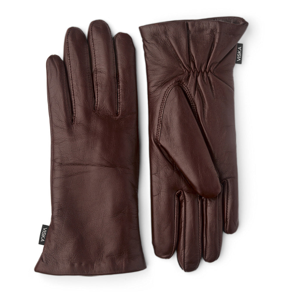 Nätt skinnhandske i lammnappa från Viska. Handsken har ett tunnt stickat ullfoder samt en liten resår på insidan av handleden för en skön passform.