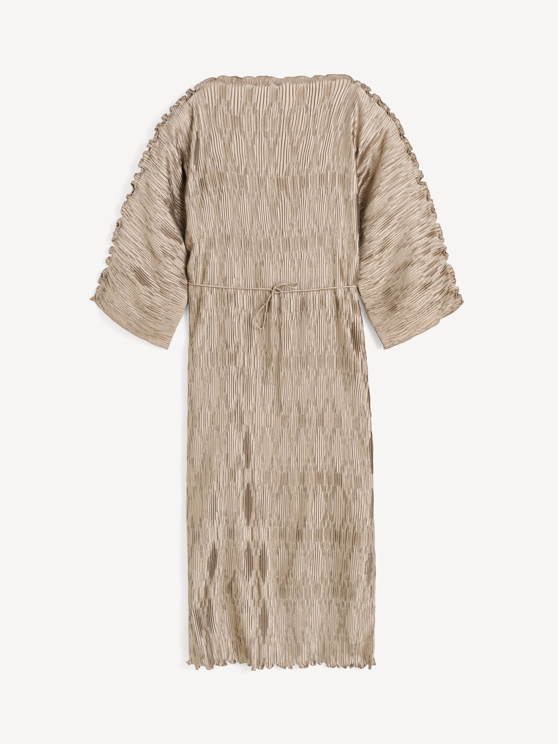 Offering a new kind of tactility, the Tralaido dress is made in a delicate, shimmering plissé that’s ideal as evening takes shape. Made in a loose fit with an adjustable belt, the ankle-gracing silhouette is completed with a flattering boat neckline.