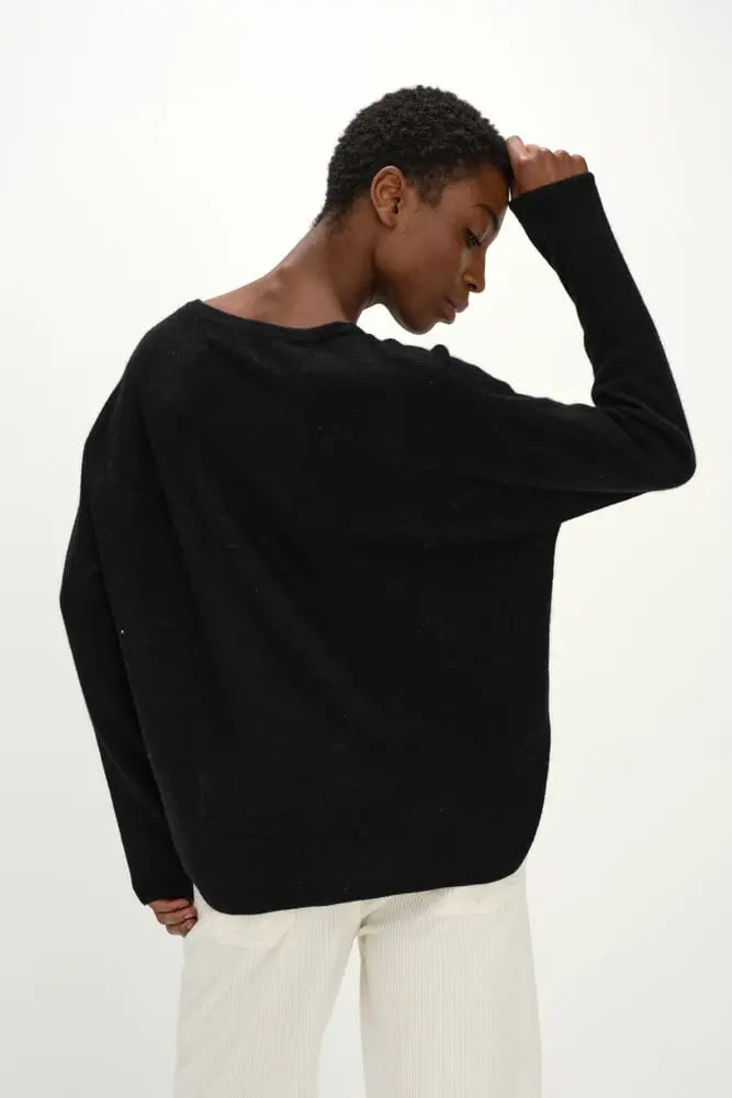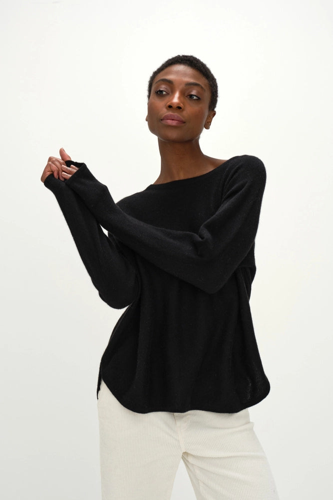 Vår bästsäljare alla säsonger! Med en rundad halsringning och en oversized passform kan den bäras av alla kvinnor oberoende av storlek och kroppsform. Vi älskar den! Den är slätstickad med slits på sidorna och nedre kant är rundad både fram och bak. Tillsammans med ett par jeans får du en snygg och enkel vardagslook. Matchar du istället med en kjol kan du gå raka vägen på fest. Superfin vid alla tillfällen.