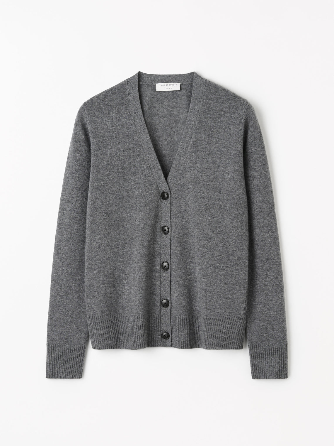 Khloe-koftan är tillverkad i en lyxig blandning av ull- och kashmirgarn, vilket ger en mjuk och förfinad känsla. Den är genomgående finstickad, med kropp och ärmar i klassisk jerseysöm för en slät finish. Den främre knäppningen är stickad med hel nålstickning, vilket ger en subtil textur och struktur. En knappstängning framtill förstärker den tidlösa designen, medan nederkanten och ärmsluten har en ren 1x1 ribbstickning. Designad med heltäckande detaljer och en smickrande höftlång skärning, kombinerar detta plagg komfort och elegans i varje stygn. Ullen i den här produkten är certifierad av Responsible Wool Standard.