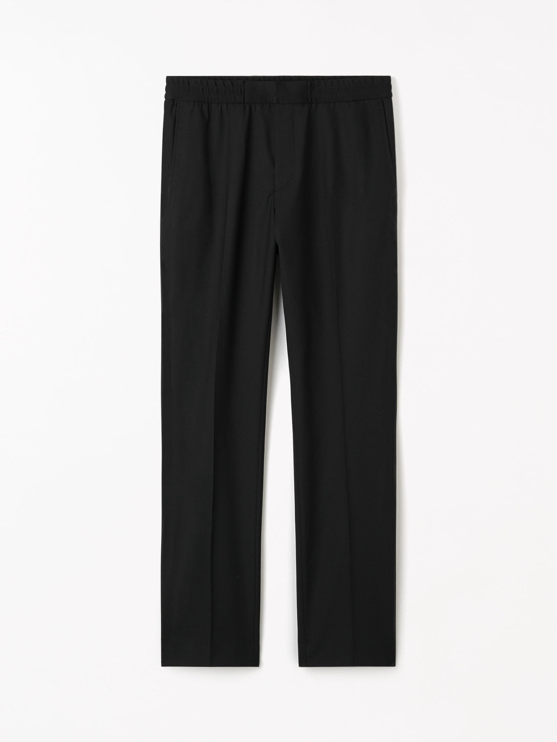 The Tannen is a refined take on the classic drawstring trouser, designed with a tailored silhouette for a polished yet comfortable look. Crafted in Ottoman satin, it features an elastic waistband with an internal drawstring for a clean finish and adjustable fit. The trousers are cut in a tapered straight-leg shape, offering a modern profile that balances ease with structure. Functional details include slanted front pockets for practicality, back pocket flaps for subtle definition, and a sleek satin side tape that adds a touch of sophistication to the overall design.