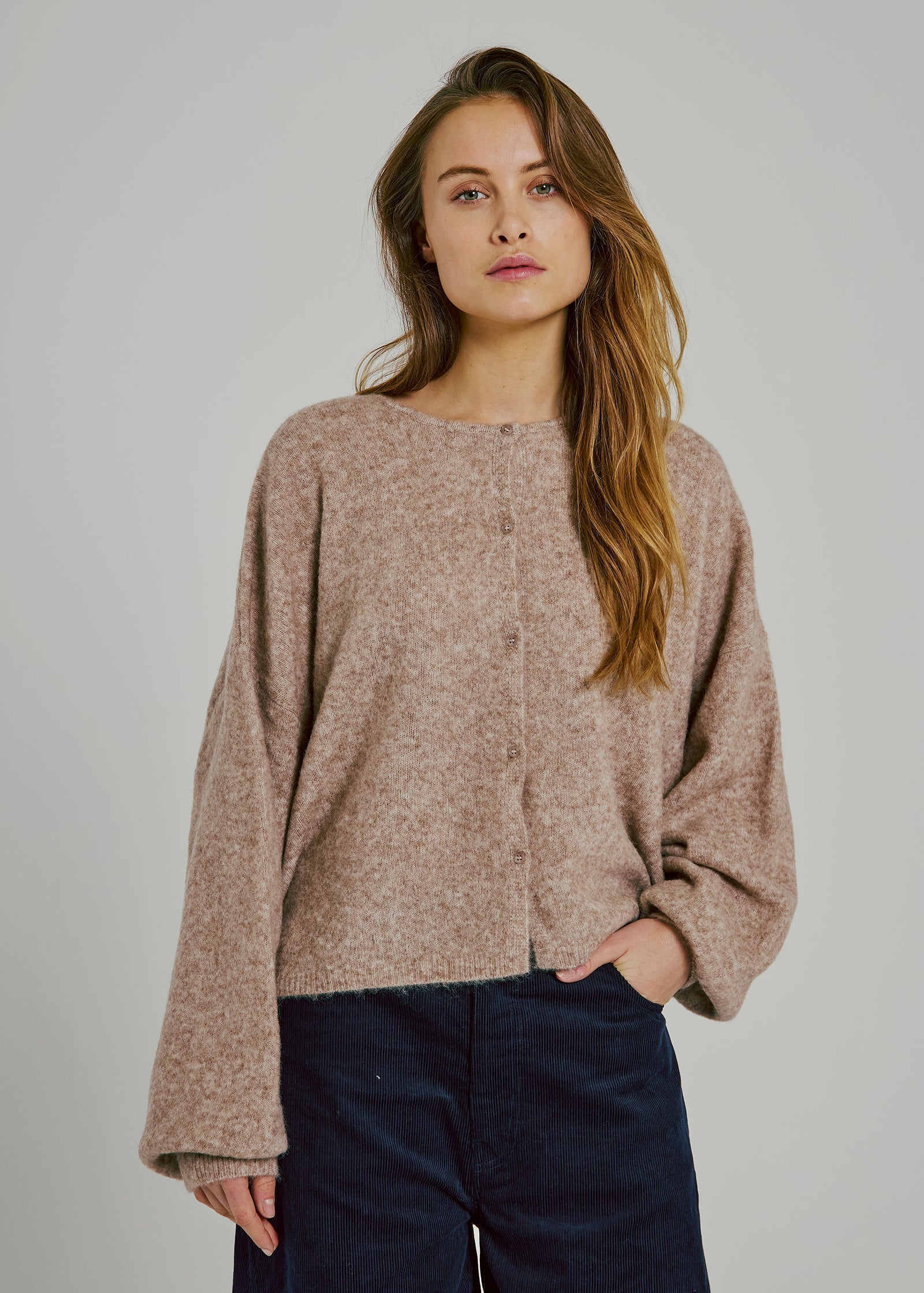 The Hali button knit cardigan combines cozy comfort with a timeless design. Featuring a relaxed silhouette, soft texture, and delicate button-down detailing, it’s perfect for layering over any outfit.