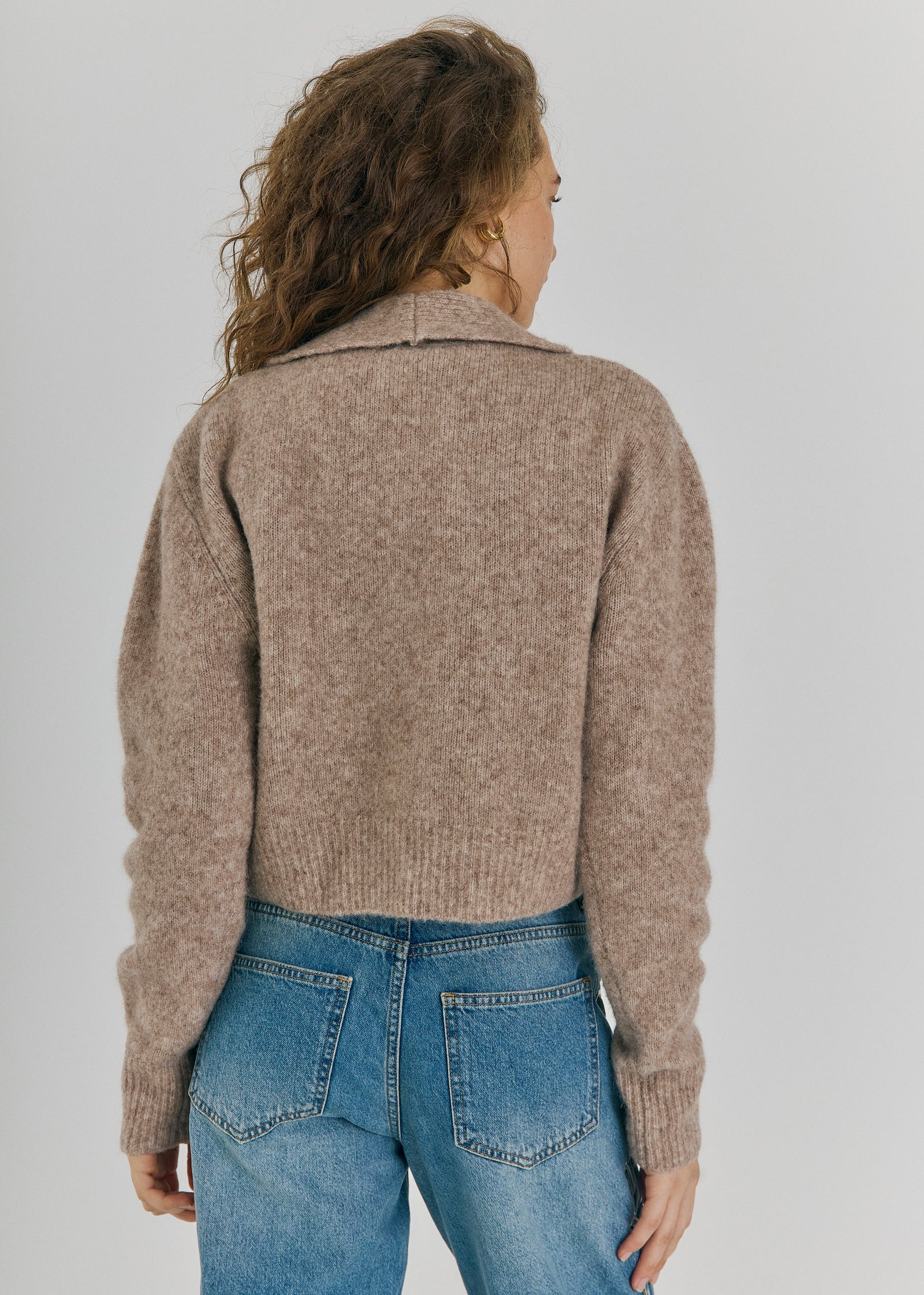 A cropped version of the cozy Halli knit, crafted in a luxurious alpaca-wool blend. Features a fitted shape and button-down front — perfect for layering or wearing on its own.