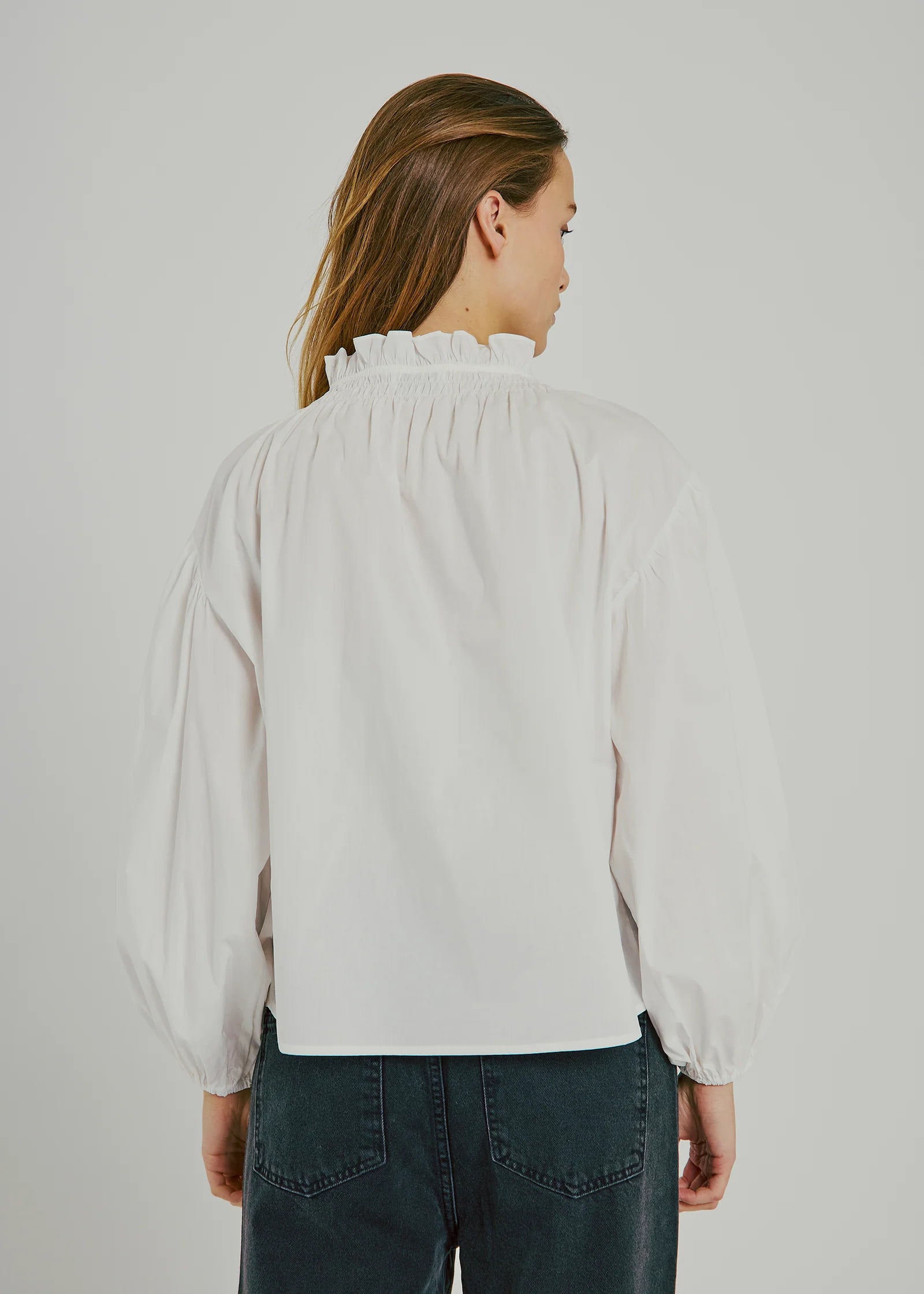 A versatile wardrobe essential, the Lilo Shirt features a relaxed silhouette with voluminous sleeves and gathered detailing around the neckline. The button-down front adds a clean finish, making it a timeless piece for both casual and more polished looks.