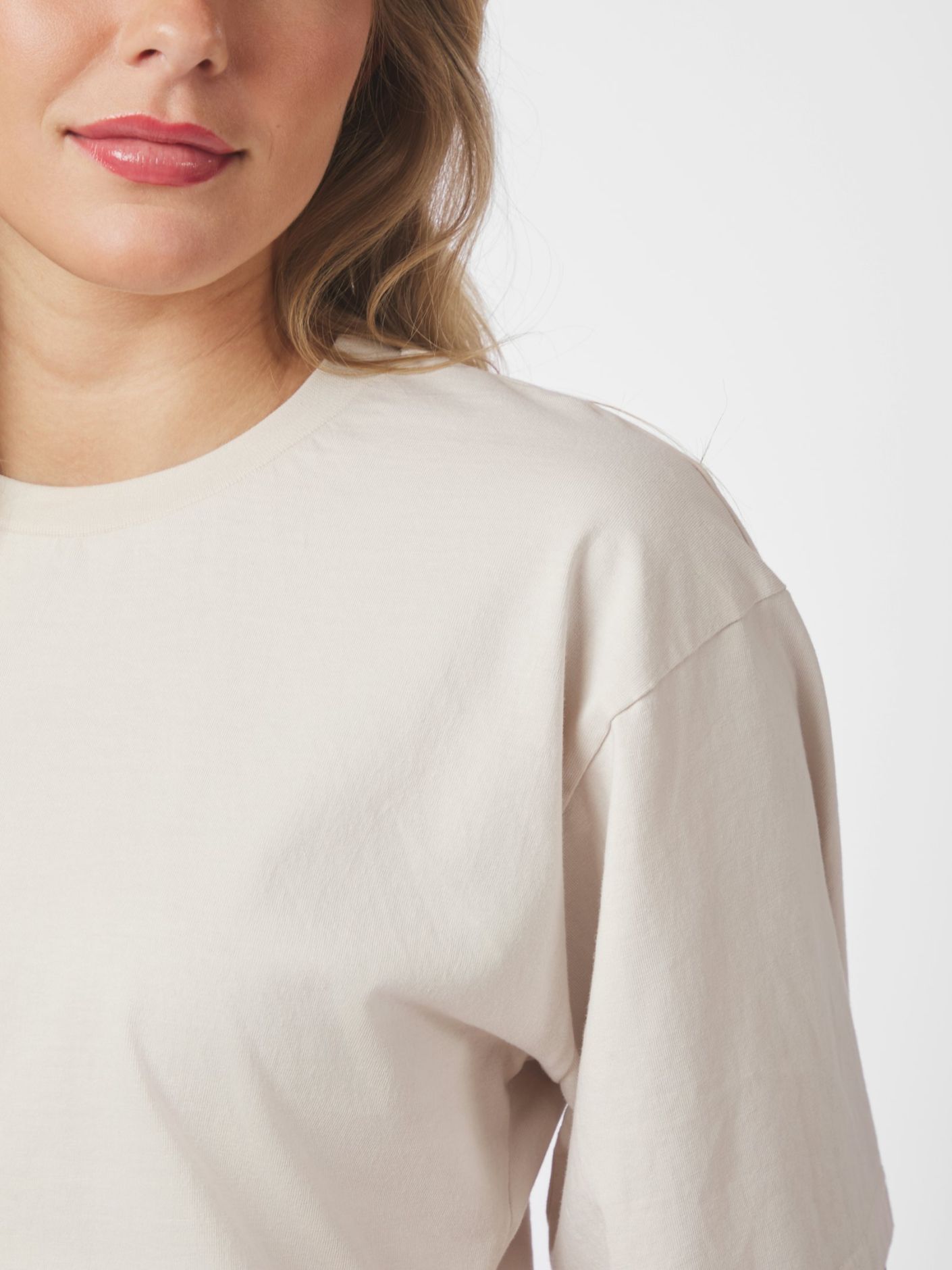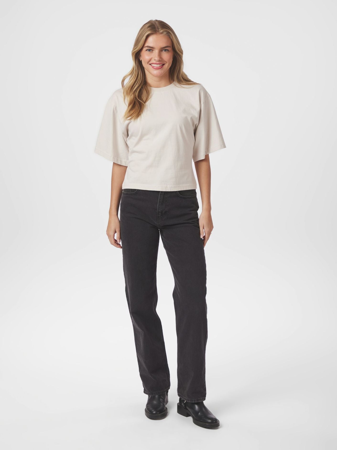 T-shirt med coola boxiga ärmar och sänkta axlar. Kroppsnittet är mer figursytt. Modellen är 176 cm och bär storlek 36.