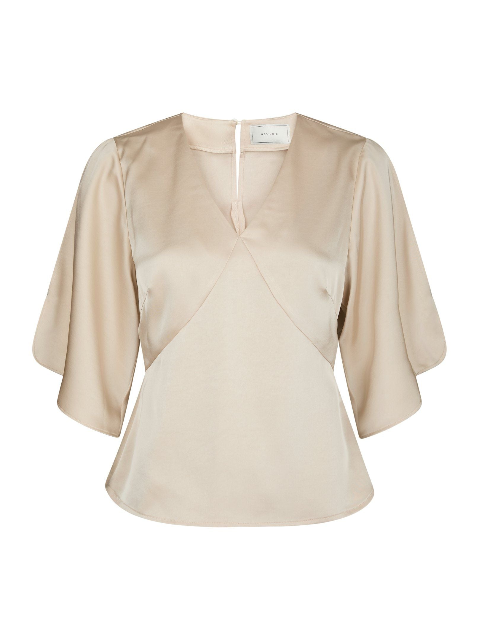 Blus med lösa ärmar och v-ringning. Blusen har en dragkedja bak. Modellen är 176 cm lång och bär storlek 36.