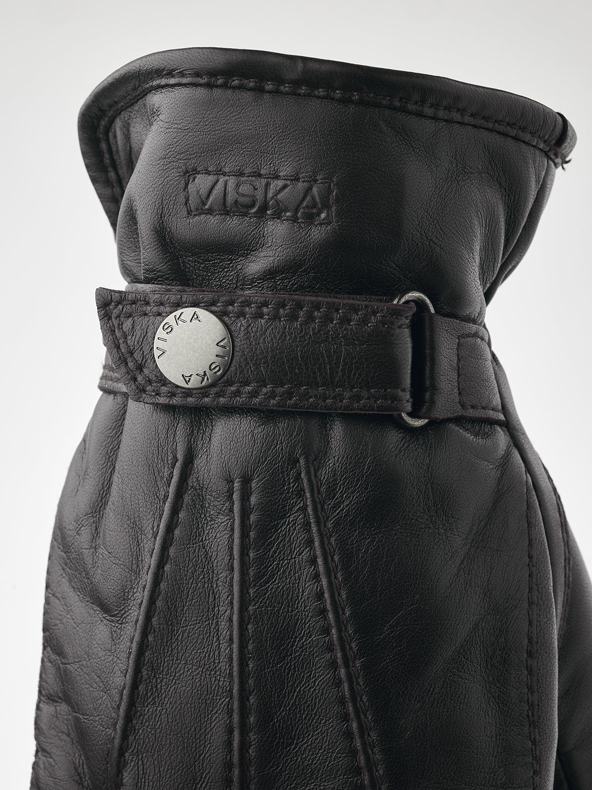 Denna handske från Viska tillverkad i skinn är en idealisk följeslagare för de kalla vinterdagarna.