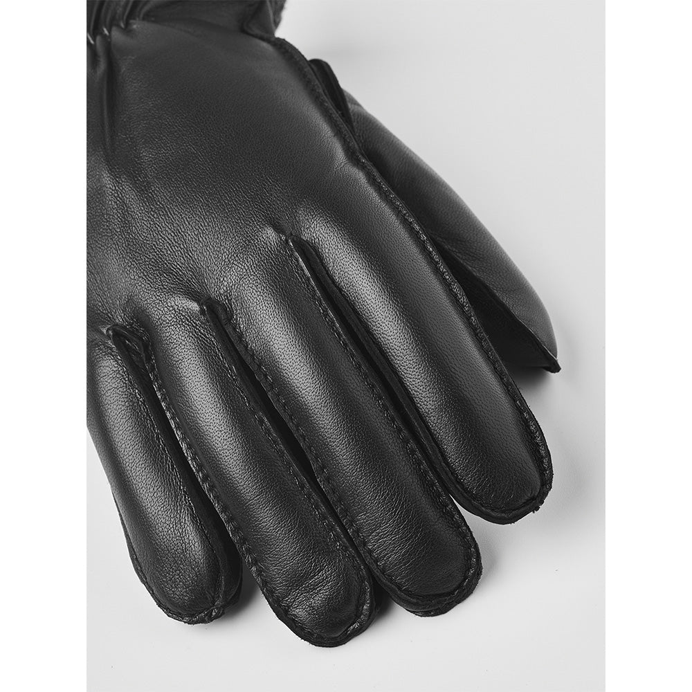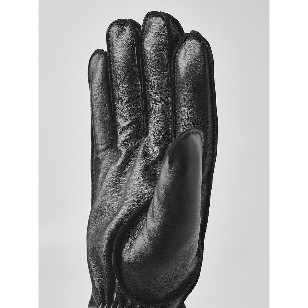 Stilren modehandske i skinn från Viska med lätt värmande syntetfoder. Sydd i mjuk lammnappa fin följsamhet och lyster. Skärningen är medelhög med en ribbstickad mudd som kontrasterar fint mot lädret. En mångsidig accessoar för kyliga höst- och vinterdagar.