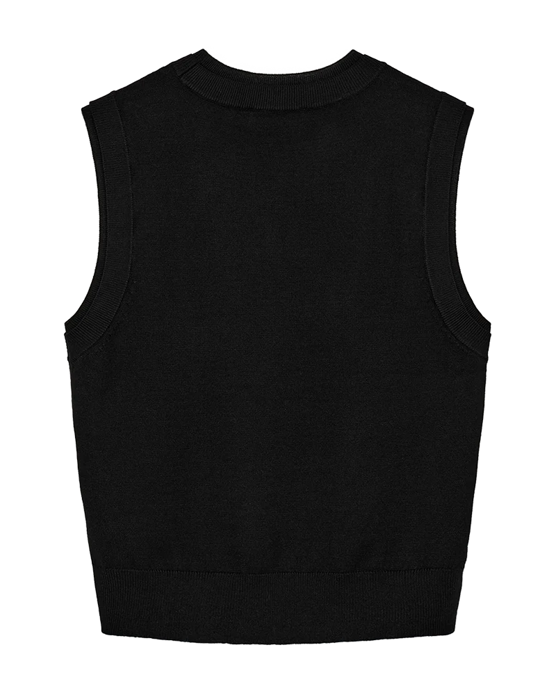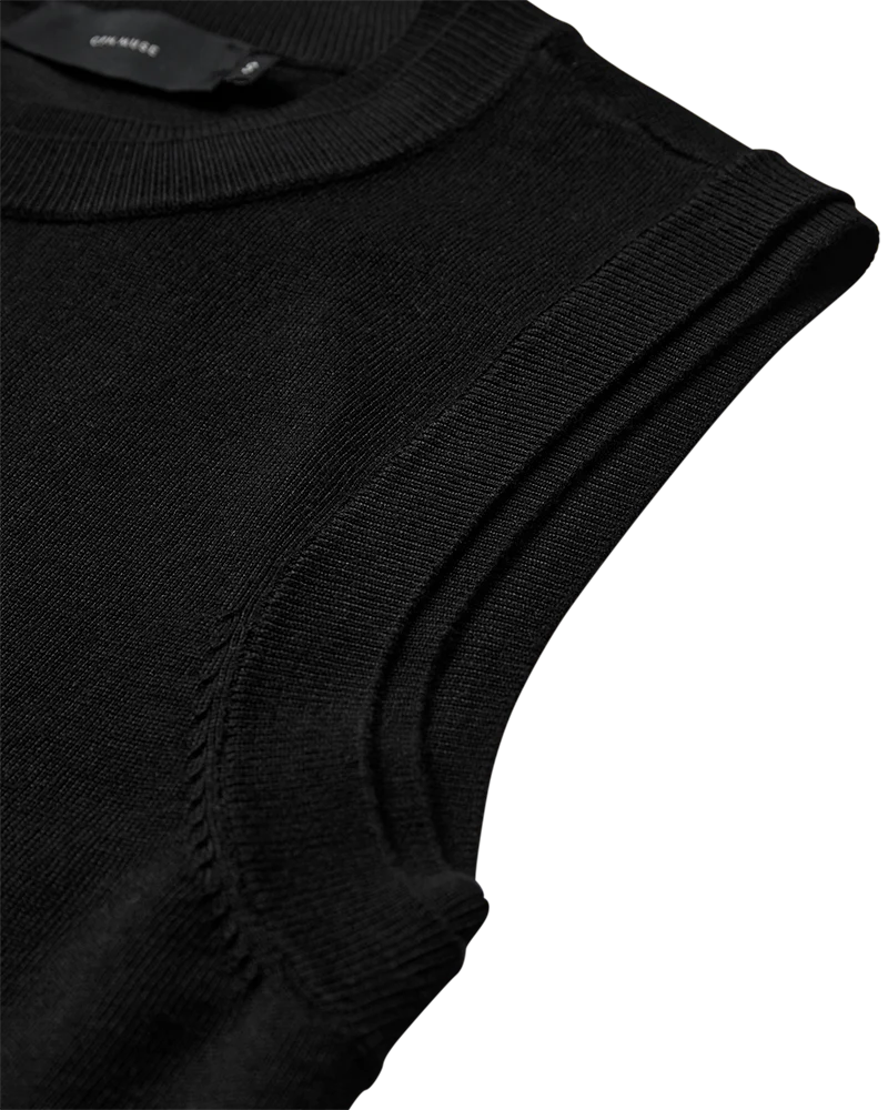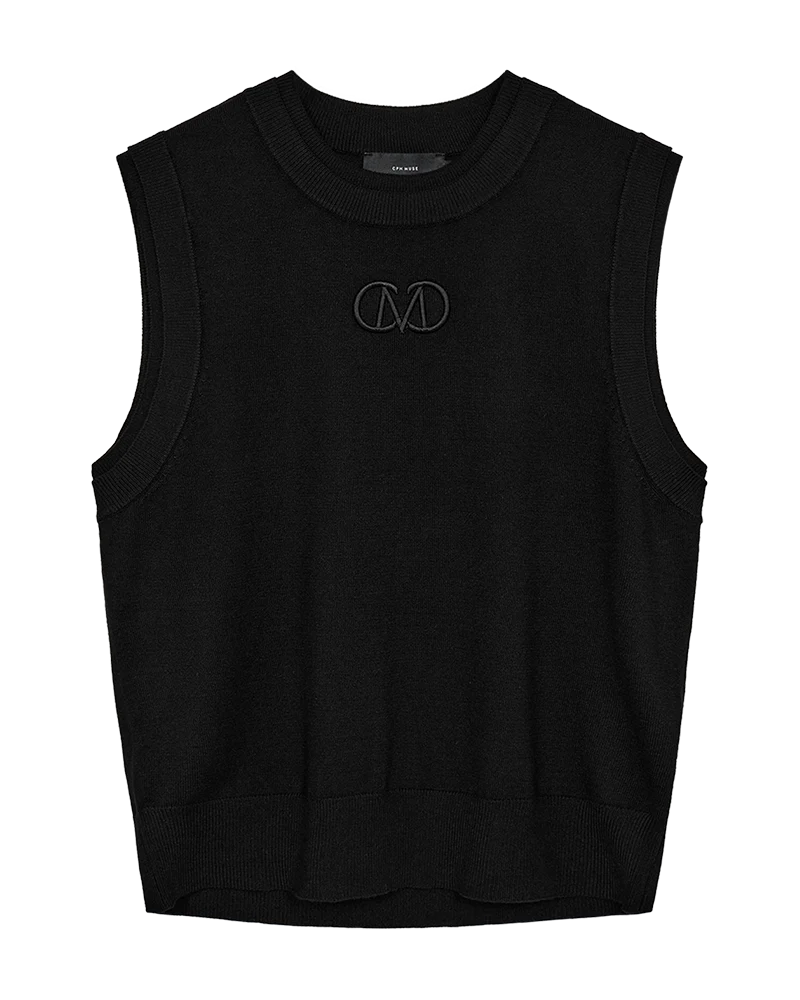 CMVERAN-WAISTCOAT is a waistcoat in a fine-knit material with double ribbing in both the rounded neckline and at the shoulders. In addition, the waistcoat has a loose fit as well as an embroidered logo detail on the chest.