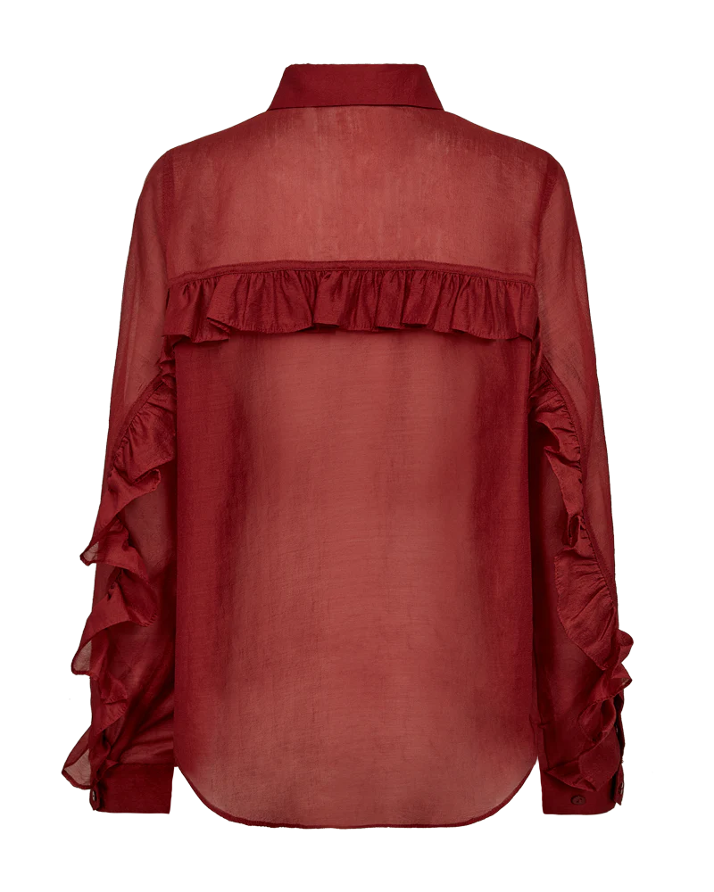 CMBLUEBELL-SHIRT is a long-sleeved shirt in a premium, transparent material with a classic collar, a concealed front button fastening, a loose fit and a wide ruffle across the back and sleeves for a refined look.