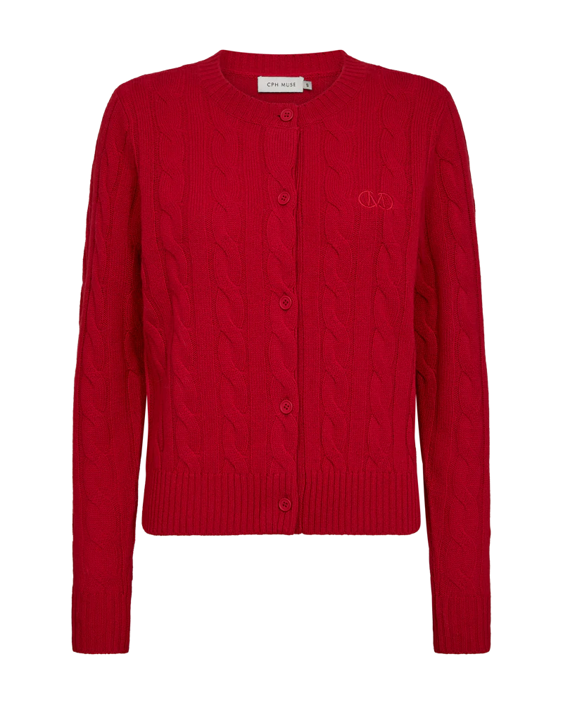 CMCASHA-CARDIGAN is a cardigan in a premium, cable-knitted material, with long sleeves, a rounded neckline, front button fastening, ribbing as well as an embroidered logo detail on the chest.