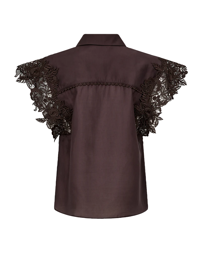 CMMOLLY-SHIRT is a shirt in a premium material with a concealed button fastening with embroidered edges and a collar fold. In addition, the shirt has short sleeves with an embroidered floral texture for a feminine look.