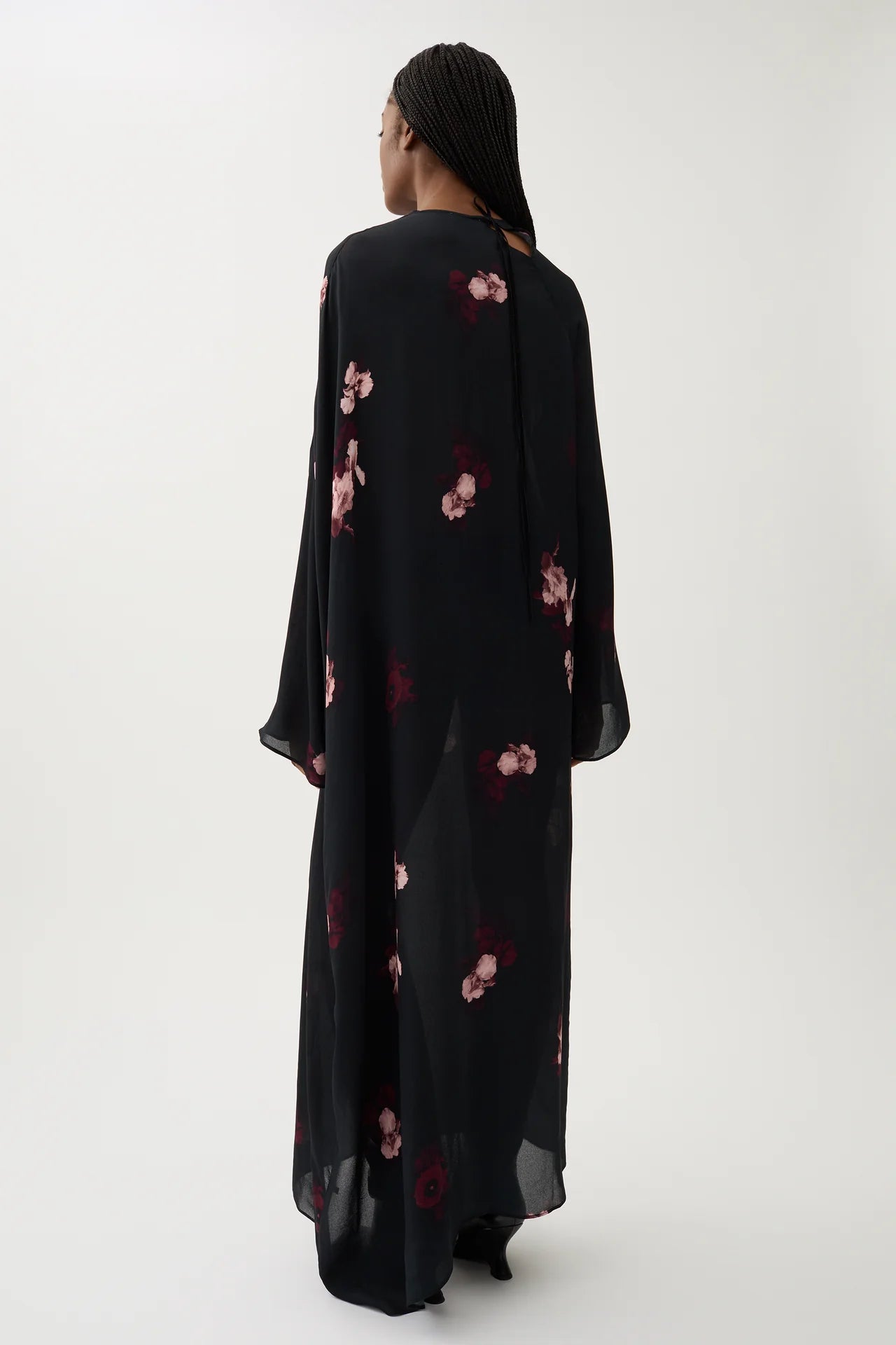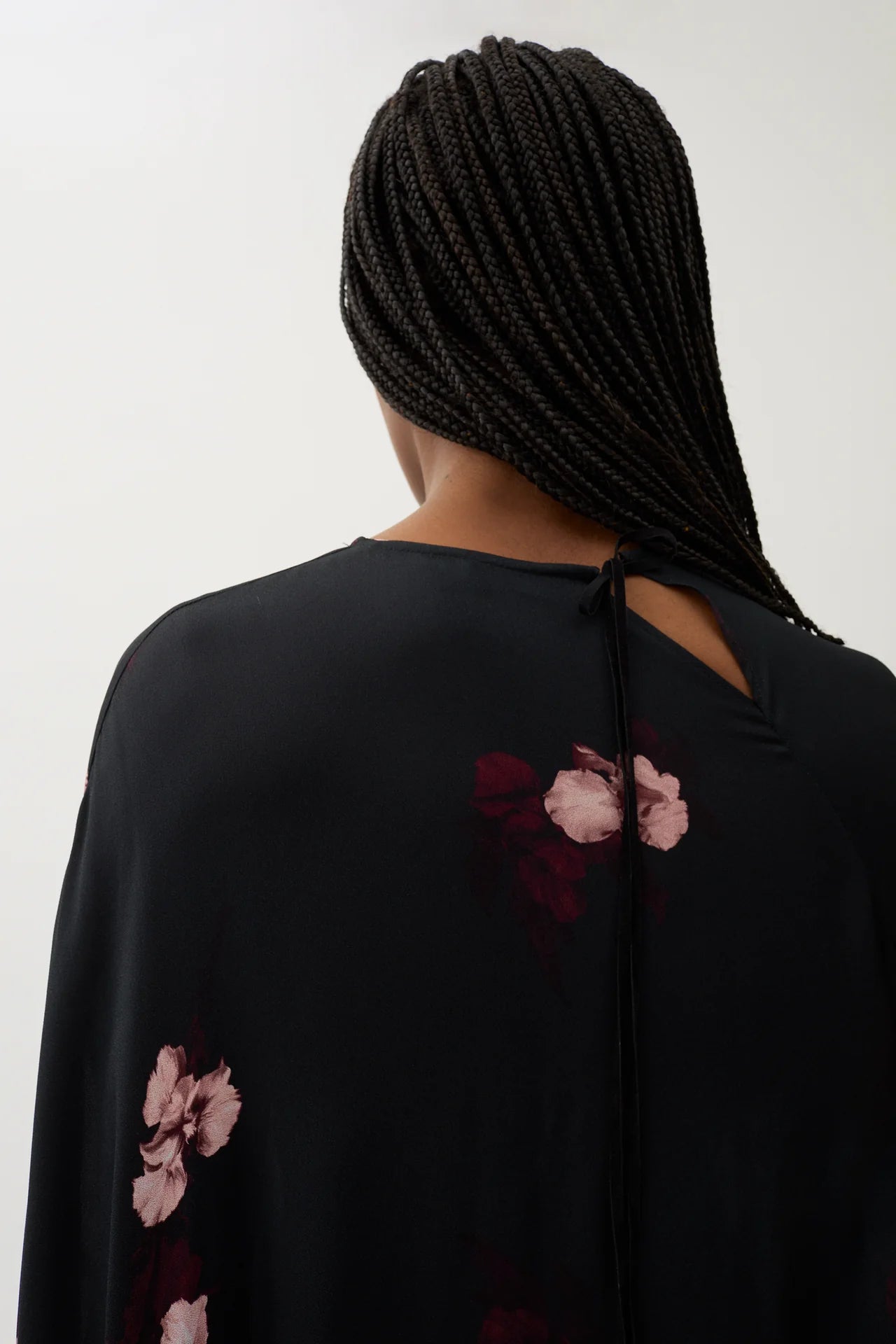 Echoing the painterly blooms seen throughout the FW/25 collection, the Marge dress arrives illustrated in our seasonal Bouquet print. Crafted from sustainable rayon crêpe, this relaxed style has one raglan sleeve and one dropped sleeve, creating an asymmetric silhouette that extends to its hemline. Style yours with soft knit accessories and leather boots.