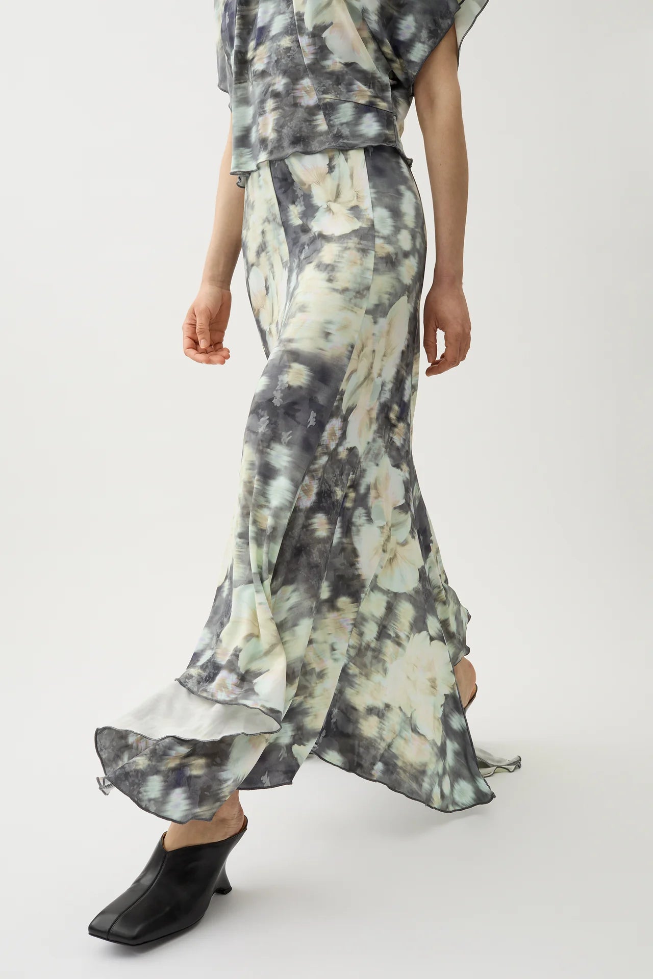 With its flowing silhouette and fluid fabrication, the Sandy skirt is essential for the ‘Strict Hippie’ wardrobe. It has an elasticated waistband for optimal comfort, and falls with gentle folds towards its asymmetrical hemline. Emphasize the movement of this piece by styling with draped blouses.