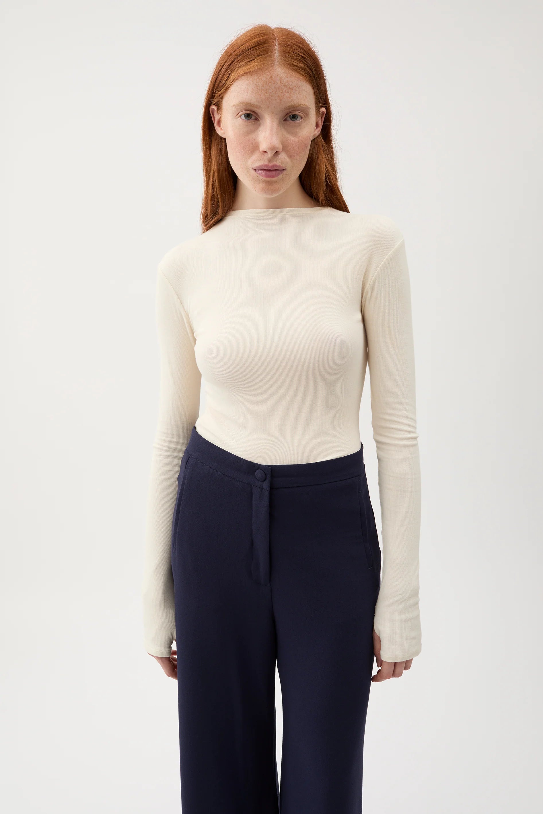 Made from soft jersey with a lightweight handle, the Karlai top is ideal for easy summer layering. It is shaped to a fitted silhouette with elongated sleeves, and arrives in a versatile off-white hue.