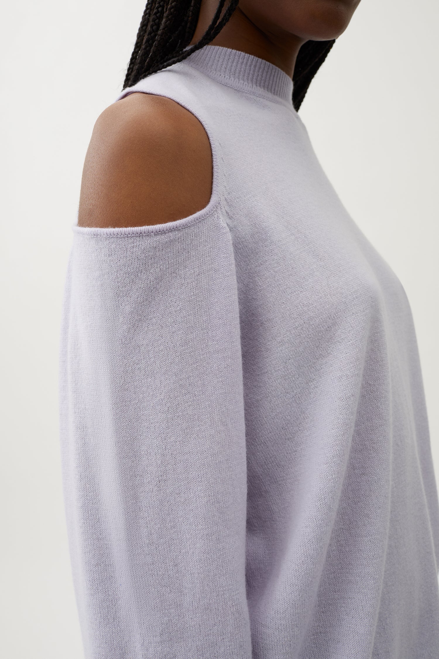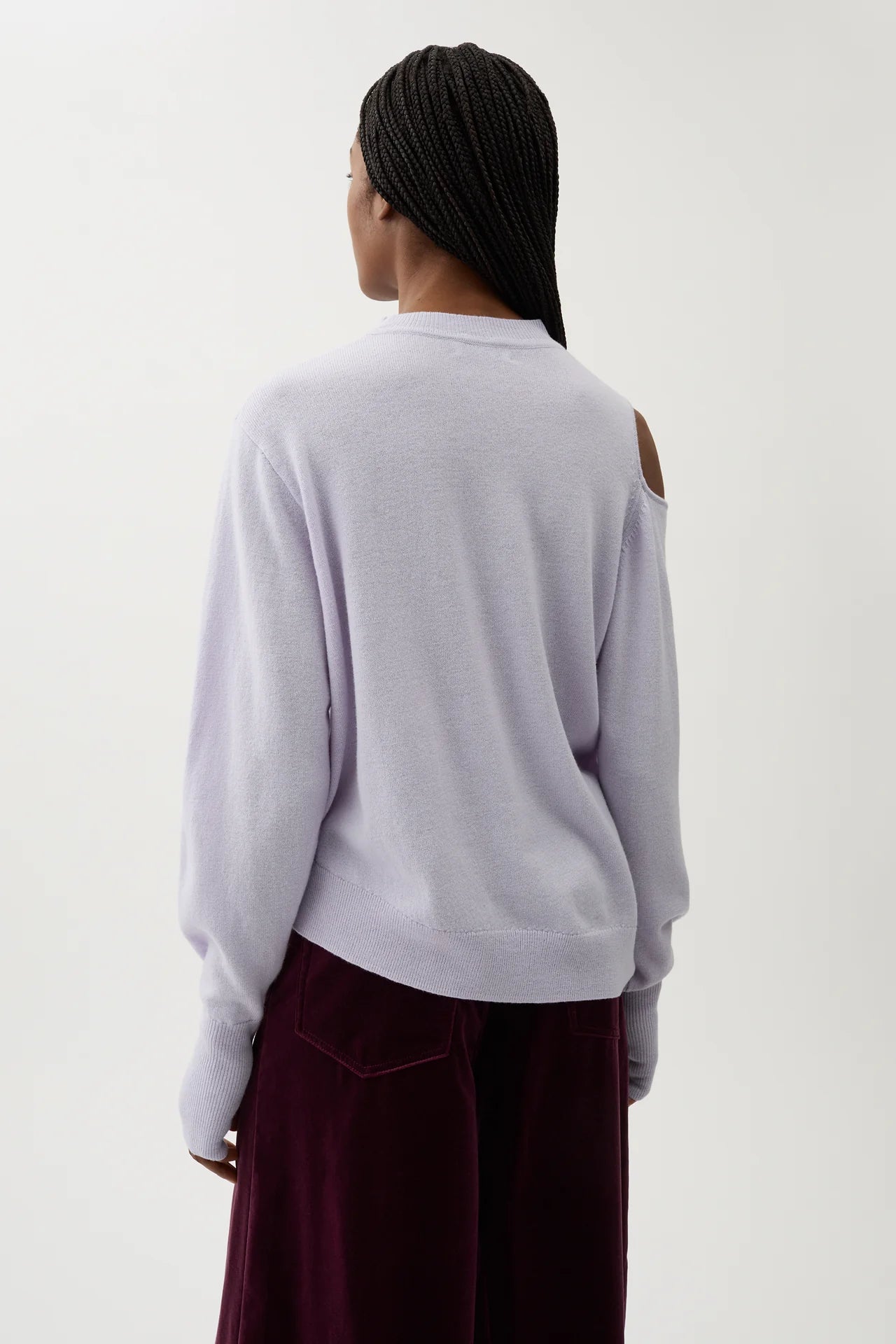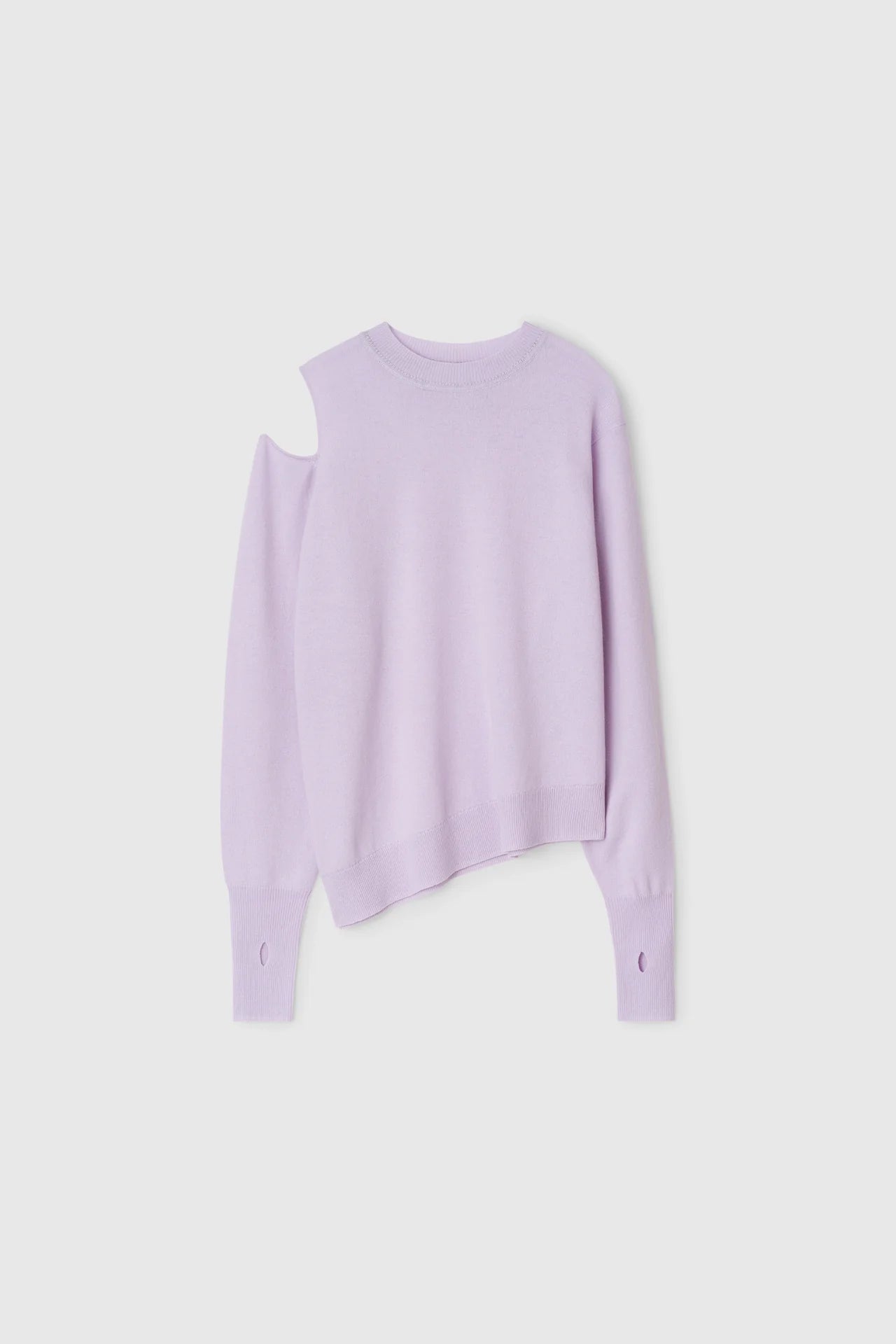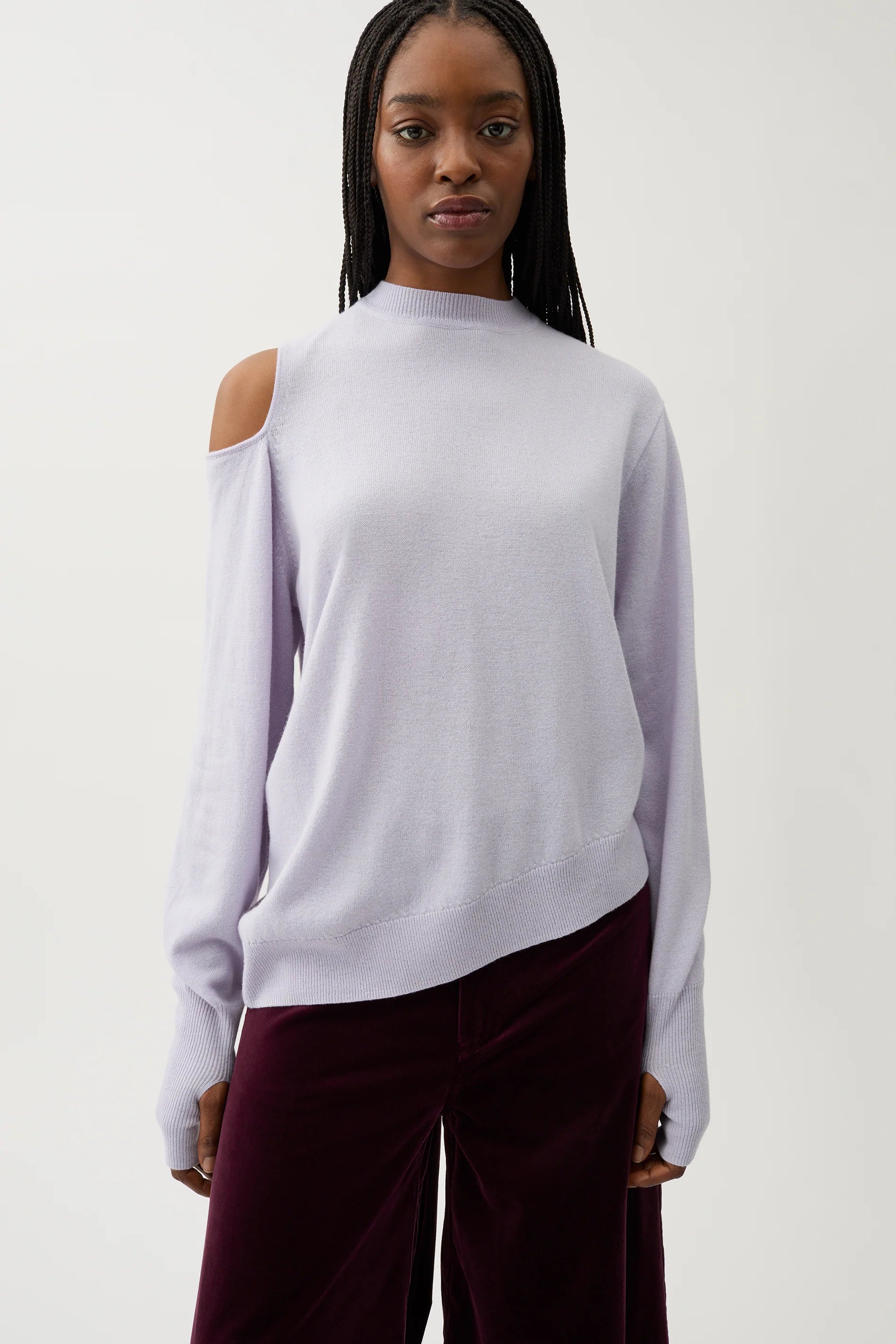 For knitwear with an expressive point of view, look to the Acer sweater. Spun from certified merino wool, it has a cut-out detail at one shoulder and thumbholes at its elongated sleeves. Its asymmetrical hemline allows for versatile styling, adding instant interest to printed pieces and tailored trousers.