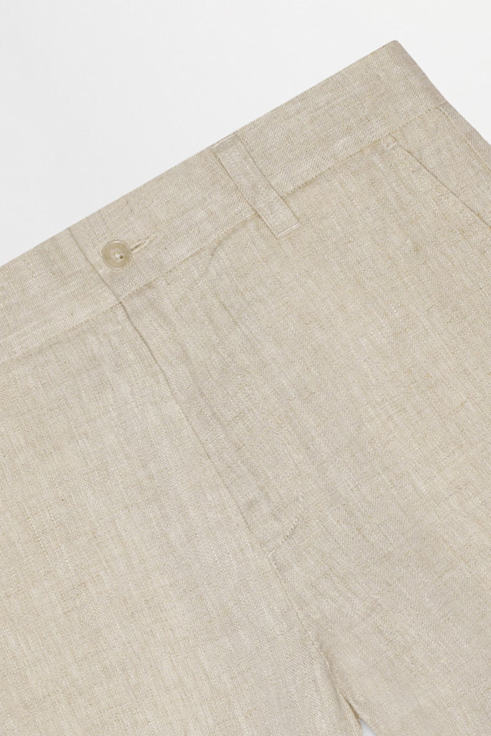 Chinoshorts med rak passform i 260 g/m2 europeiskt linne som andas komplett med knappstängning.
