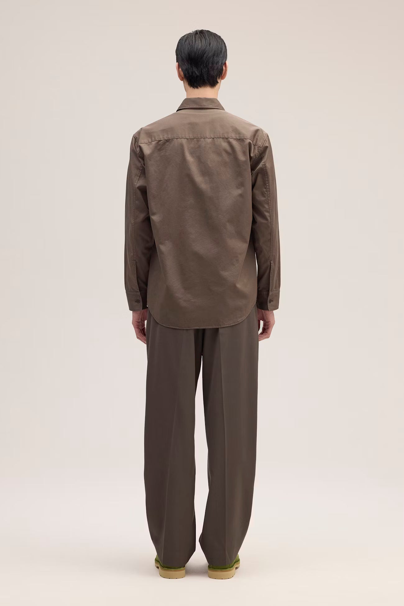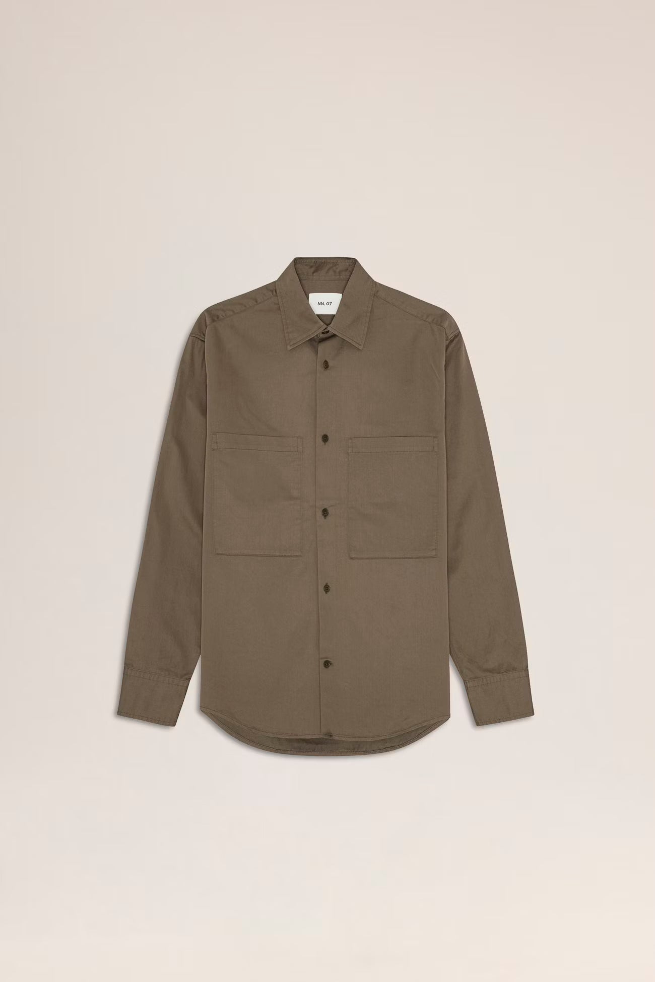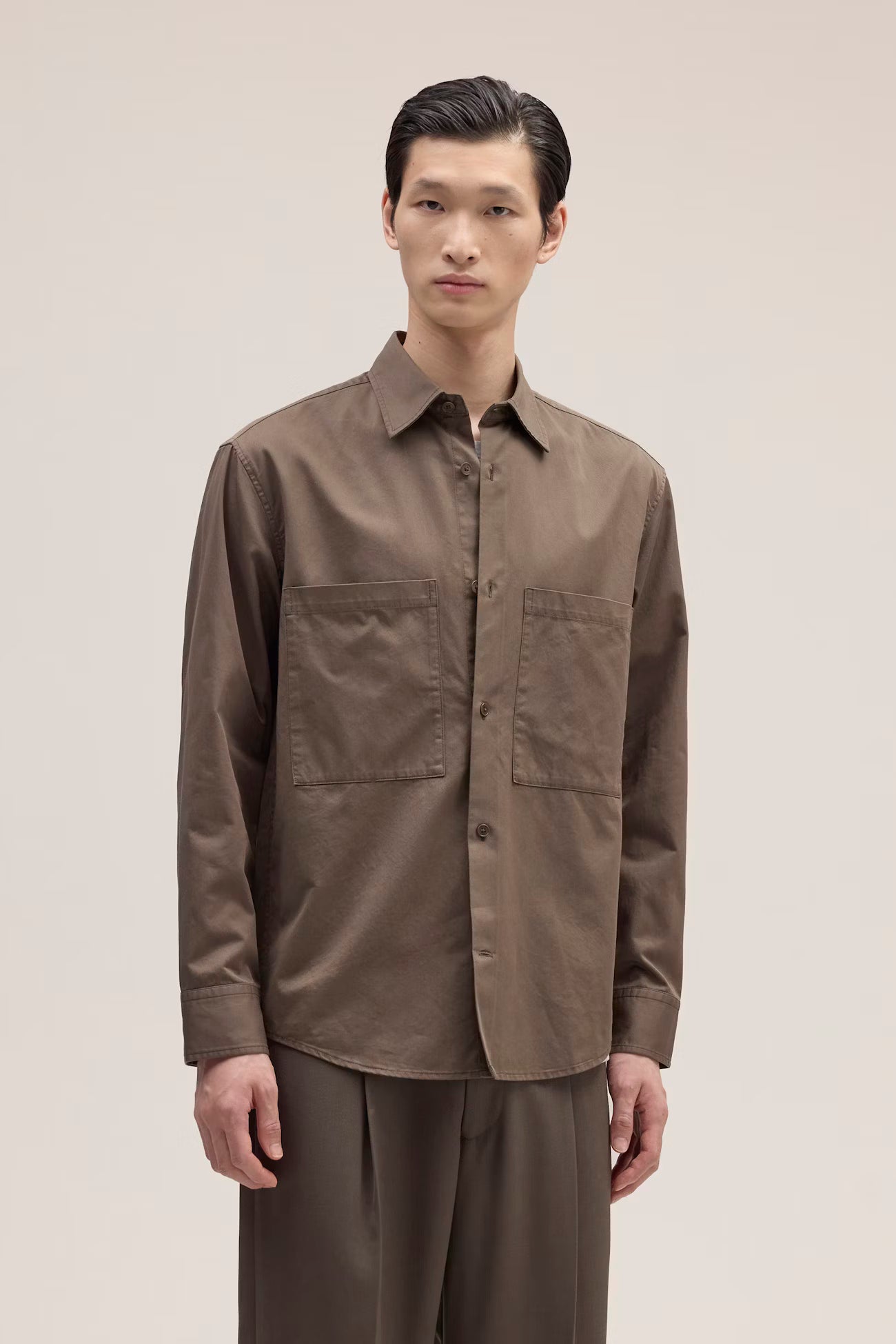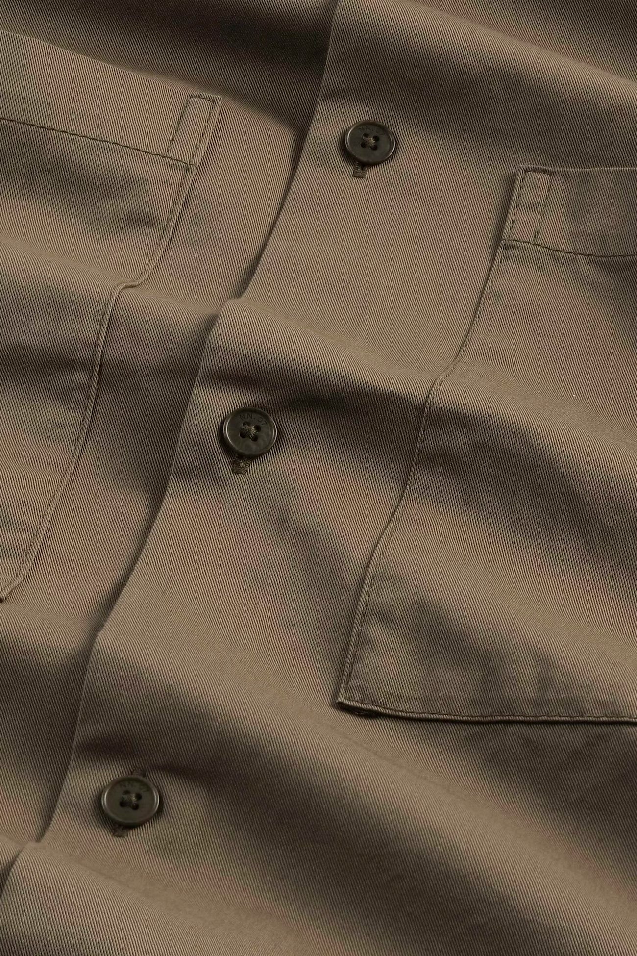 Skjorta tillverkad i en ekologisk bomullsblandning och vävd i en kompakt twillväv. Designad med workwear-inspirerade fickor med lock. Försedd med pärlemorknappar.