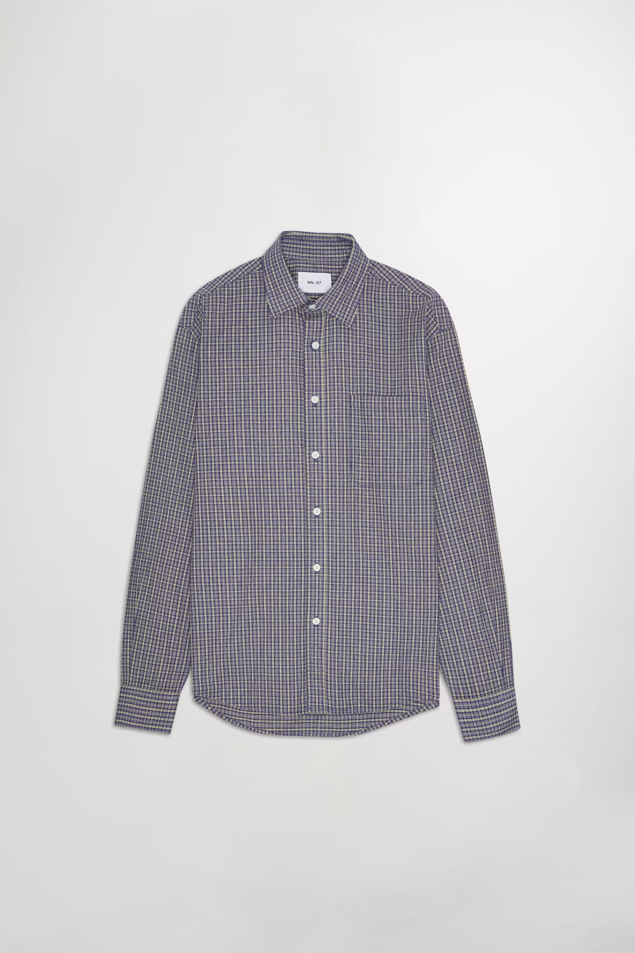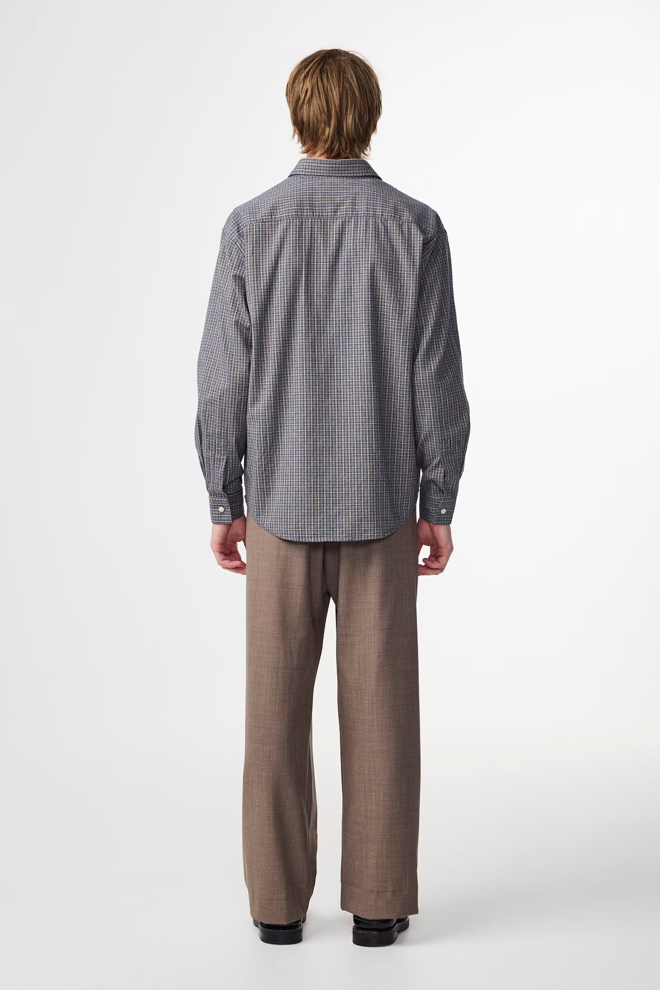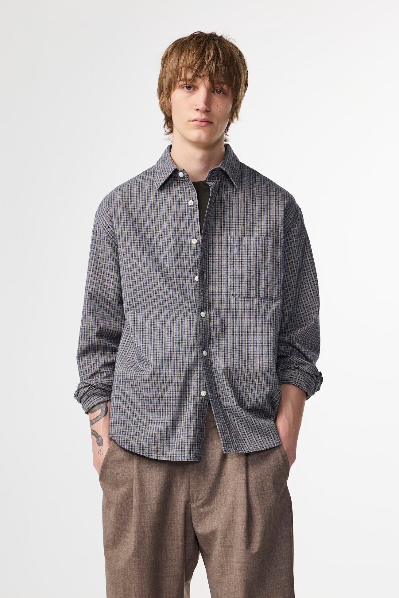 Skjorta med knappar i mjuk bomull och flanelltwillväv. Designad med en enkel påsydd ficka och rundad nederkant.