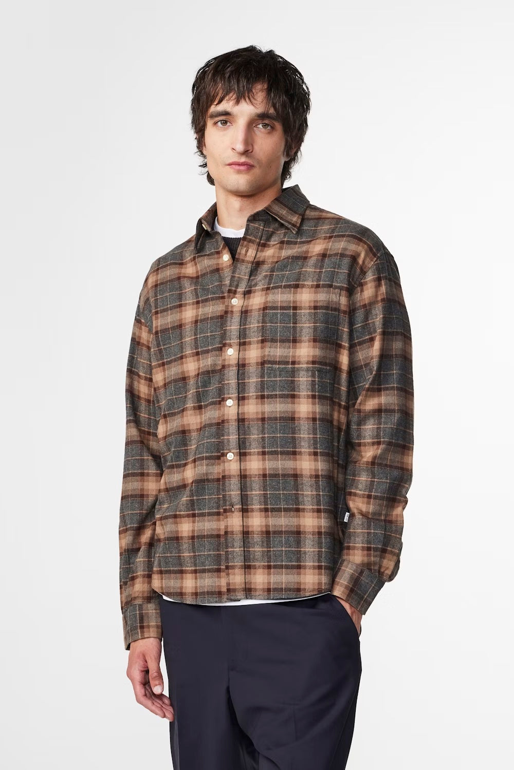Skjorta med knappar i mjuk bomull och flanelltwillväv. Designad med en enkel påsydd ficka och rundad nederkant.