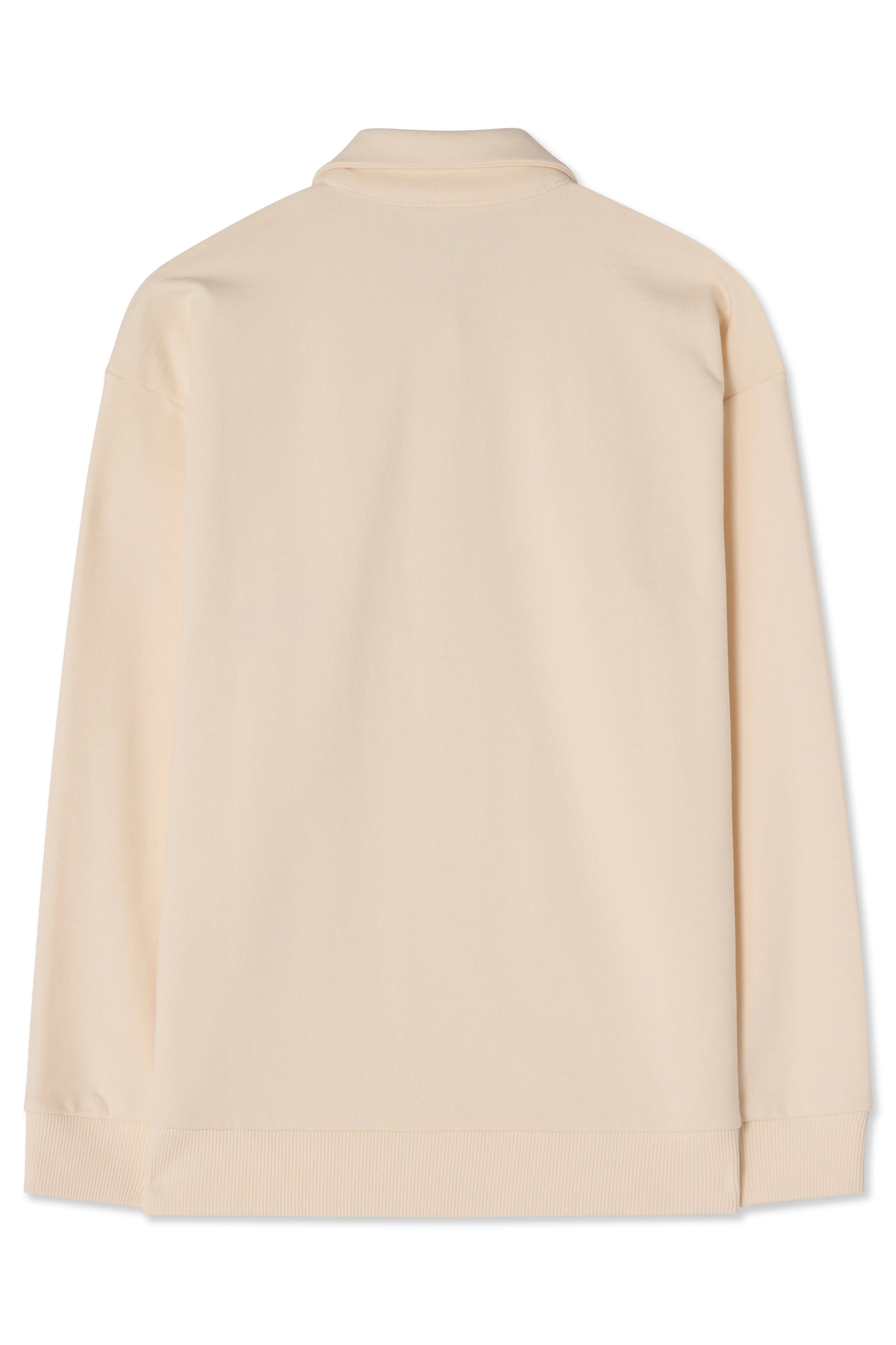 The Sequin Cherry Rugby Sweat: Stand out from the crowd. This unique sweat features a comfortable normal fit, 7/8 sleeves, and slightly dropped shoulders for a relaxed silhouette. The pearl buttons add a touch of elegance, while the small sequin cherries on the chest bring a playful, unexpected detail.