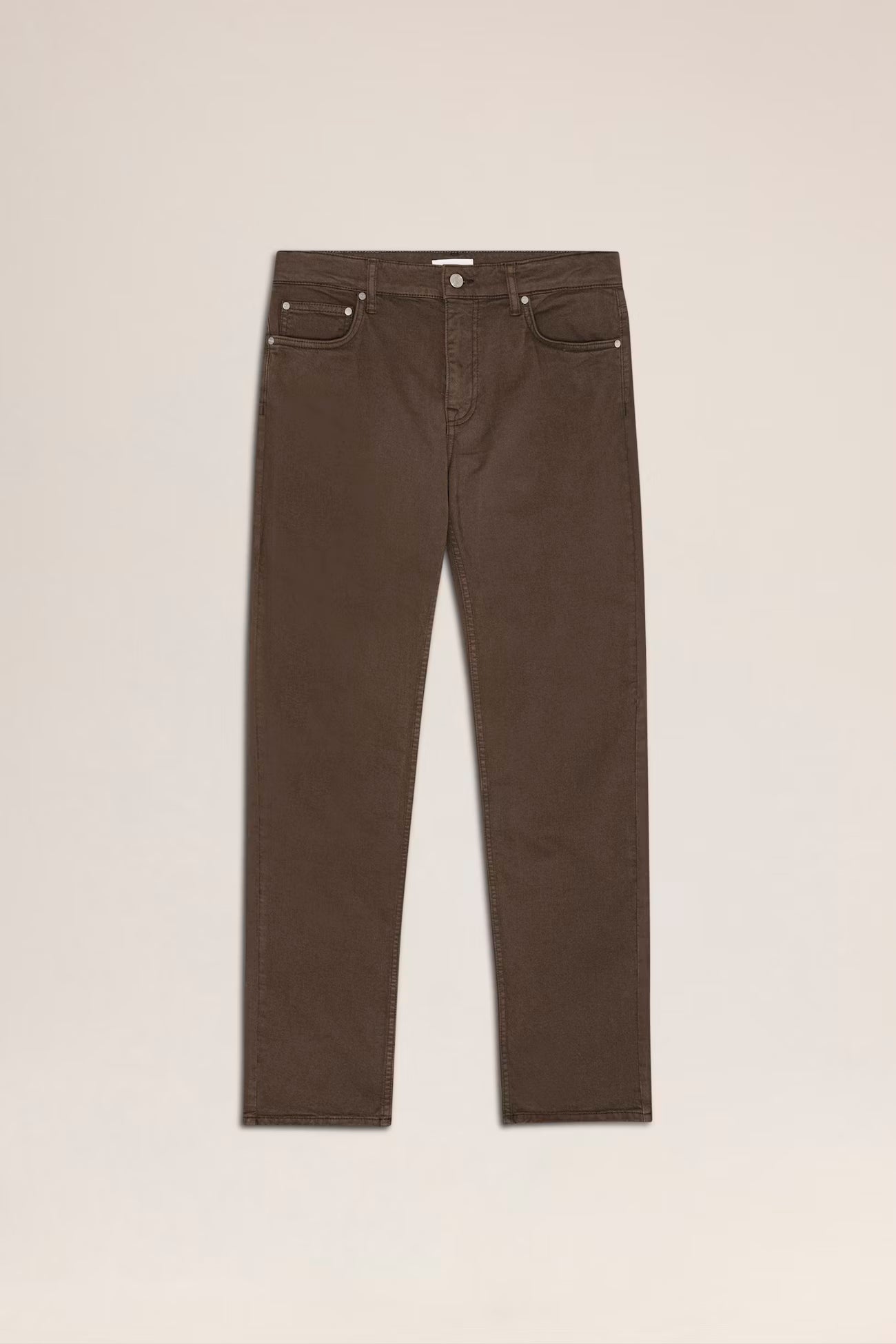 Byxor med slim fit tillverkade i en mycket mjuk 305 g/m2 ekologisk bomull med en aning stretch för ökad komfort. Designad med jeansdetaljer i fem fickor och logotypnitar.