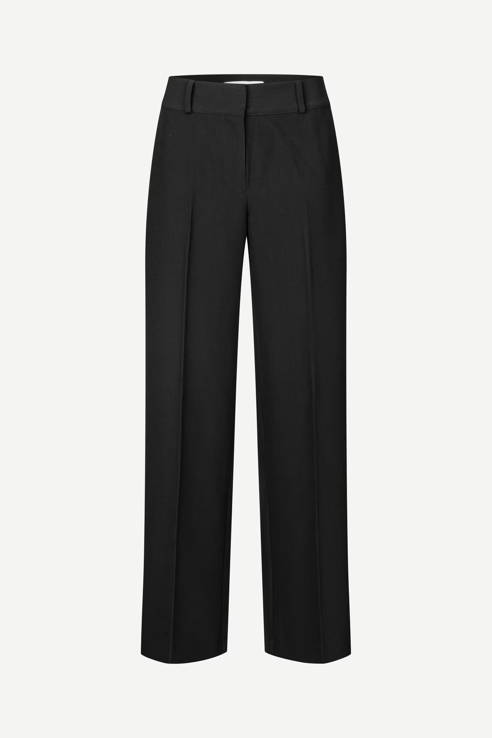 Low-waist trousers with a regular fit and straight leg. Hidden hook and zipper closure at the fly. Side slit pockets on the front. Belt loop. Main material made from an elastic blend with recycled polyester.