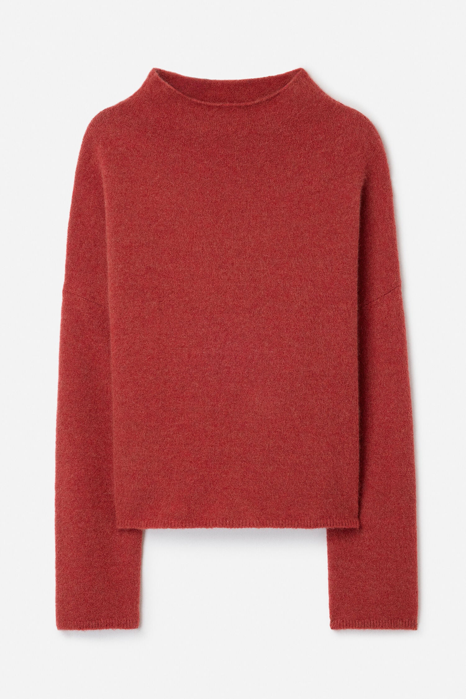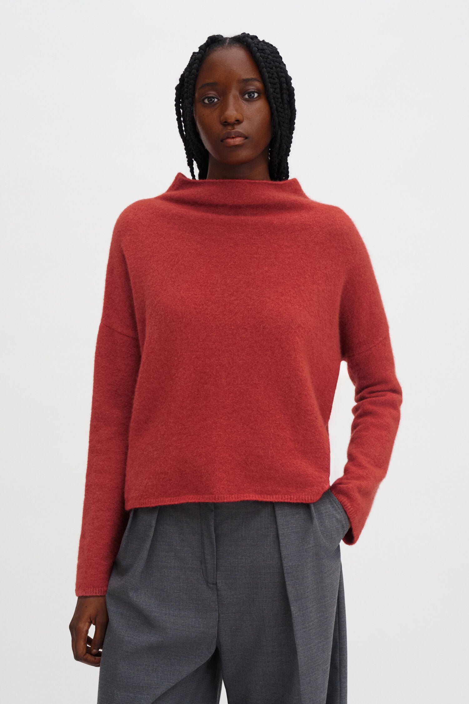The Mika Yak Funnelneck Sweater is knit in a soft, luxurious yak wool blend with stretch. Designed with an oversized, boxy fit with a dropped shoulder.