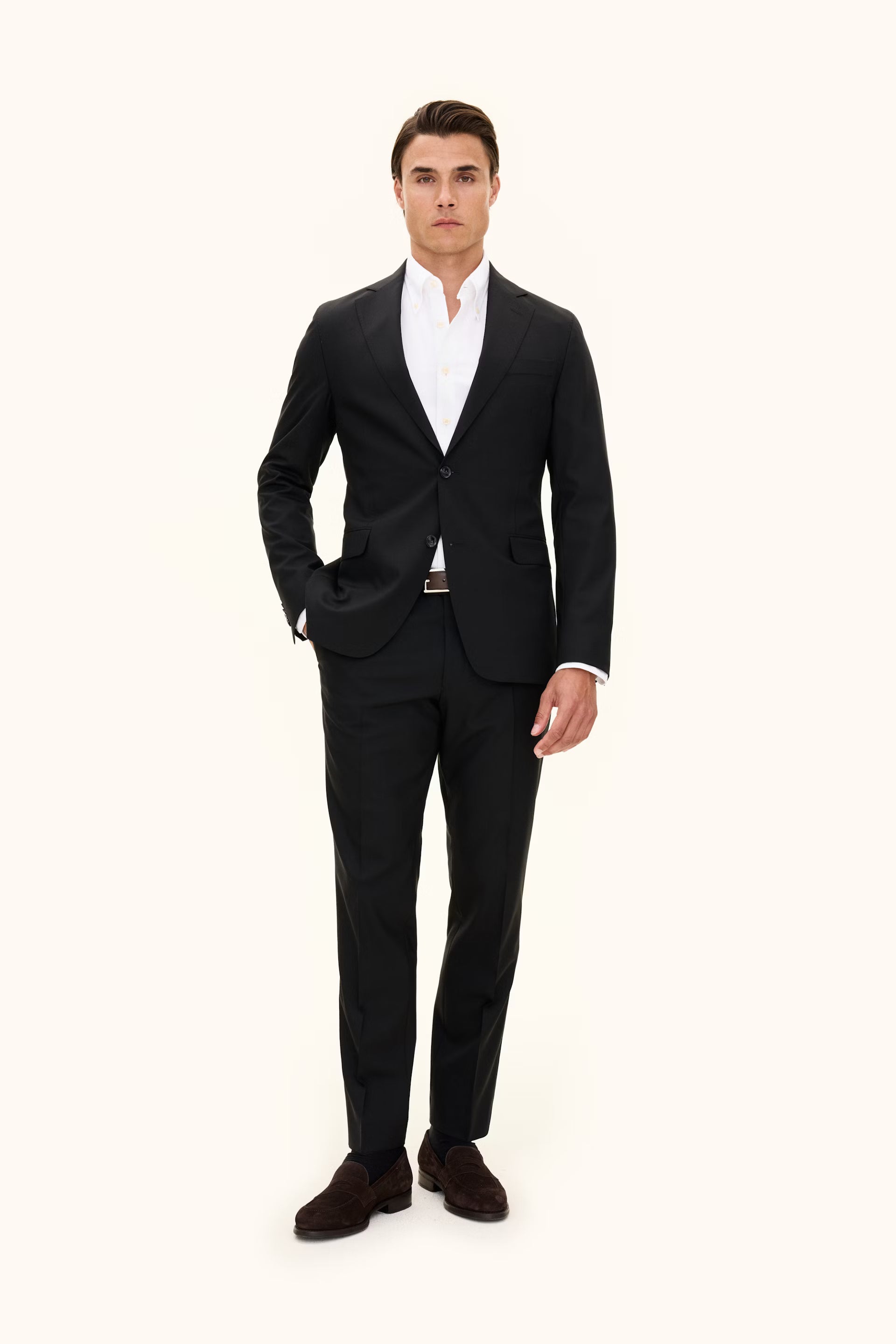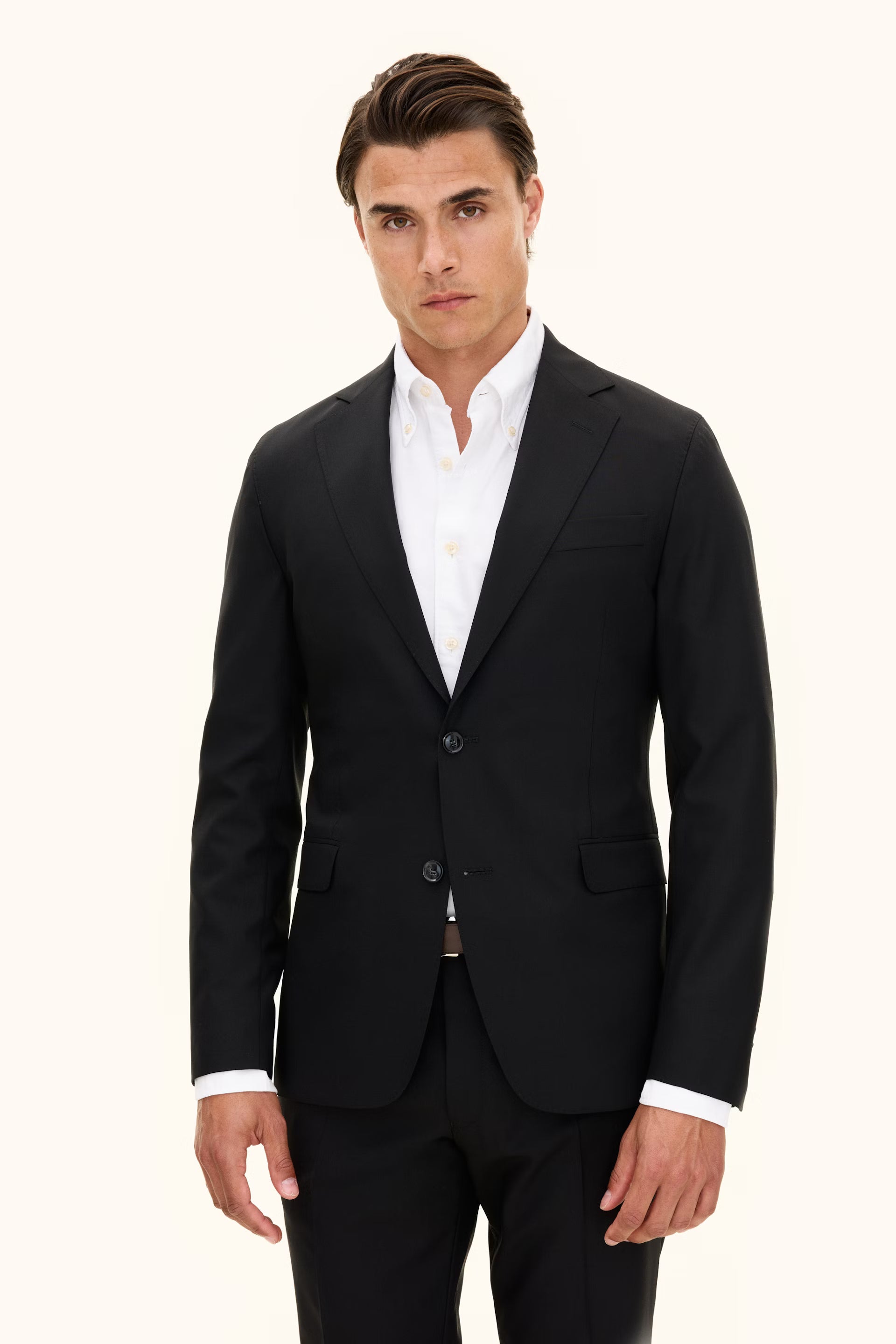 Enkelknäppt kavaj i slim fit gjord i ett italienskt super 120's ull. Kavajen har en helfodrad insida, en mjukt konstruerad axel samt ficklock.