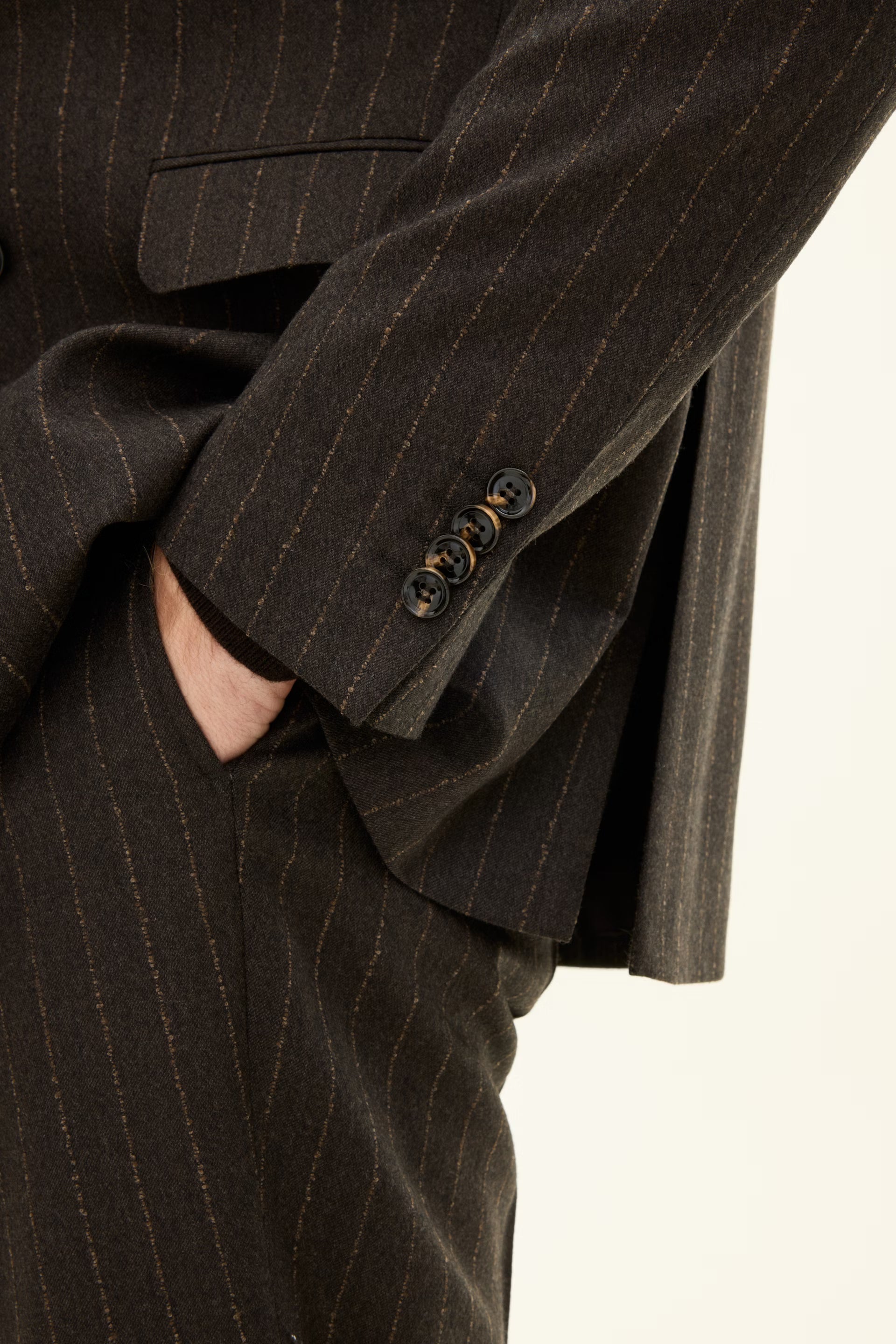 Denna dubbelknäppta kavaj i ullblandning förenar klassiskt uttryck med modern konstruktion. Regular fit ger ett rent fall och en välavvägd silhuett.