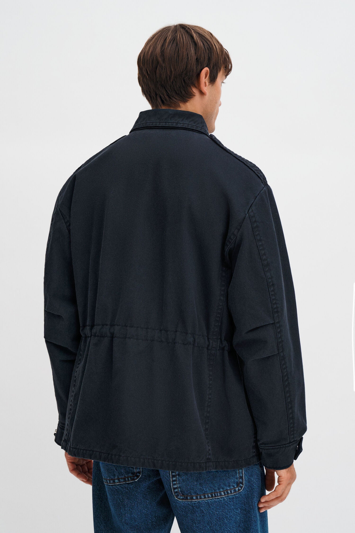 Recycled Cotton Field Jacket är tillverkad i medeltjock återvunnen bomullstwill och har en oversized passform. Designad med en justerbar dragsnodd i midjan, rejäla fickor och dragkedja.