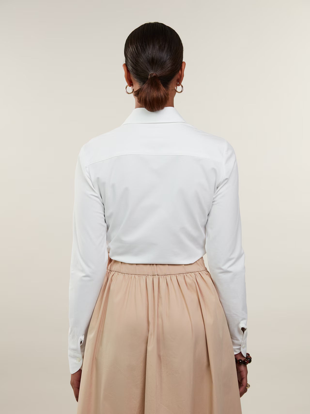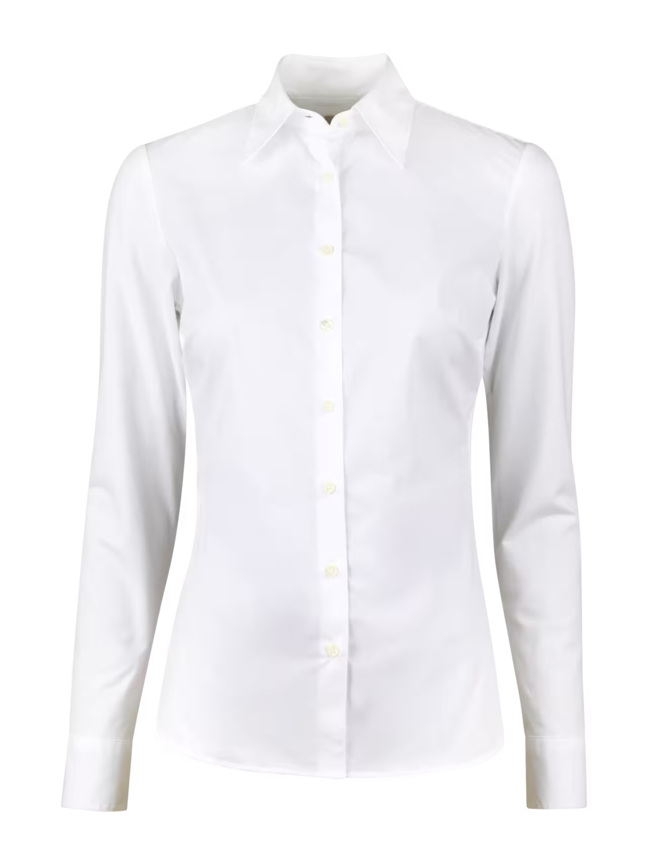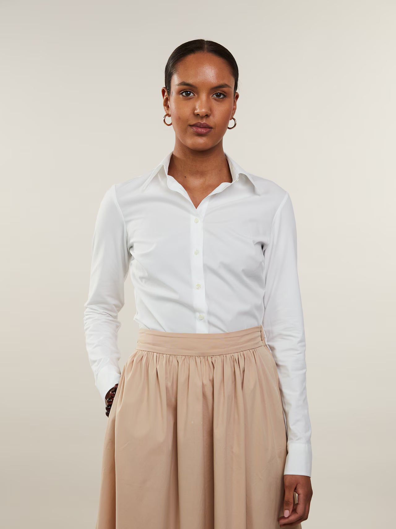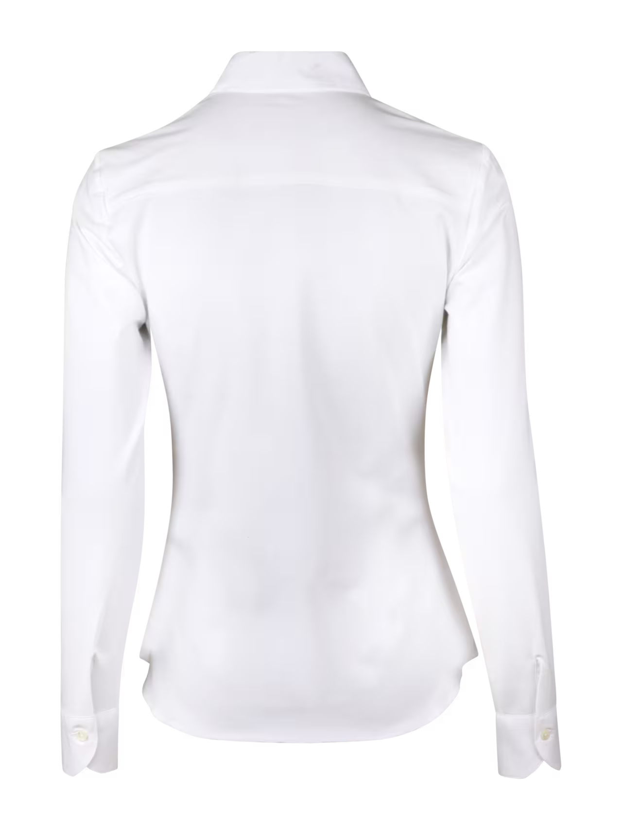 Denna skjorta är tillverkad av bomull och lycra och har en feminin passform. Skjortan är designad med jerseytyg i ryggen och på ärmarna för extra komfort. Skjortan är detaljerad med enkla manschetter.