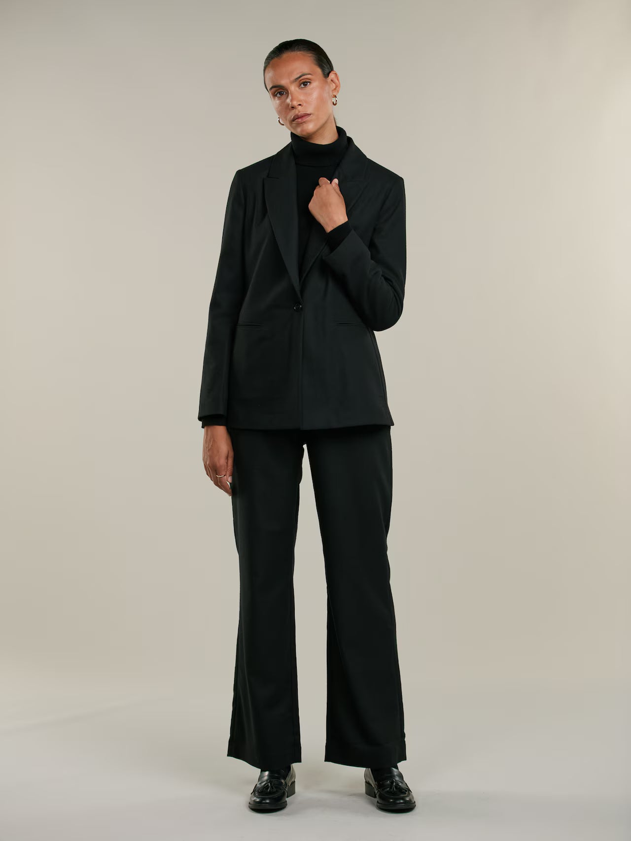 - Modellen är 179 cm lång och bär storlek S