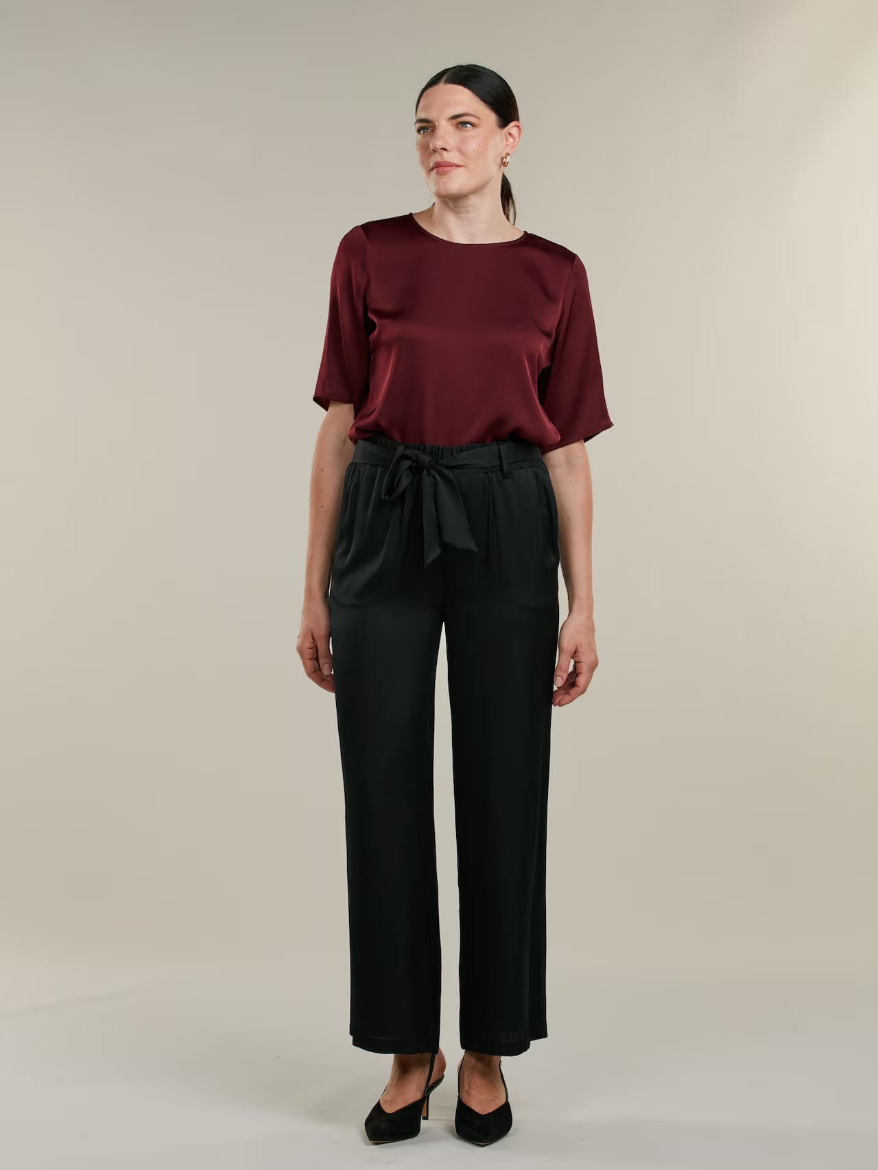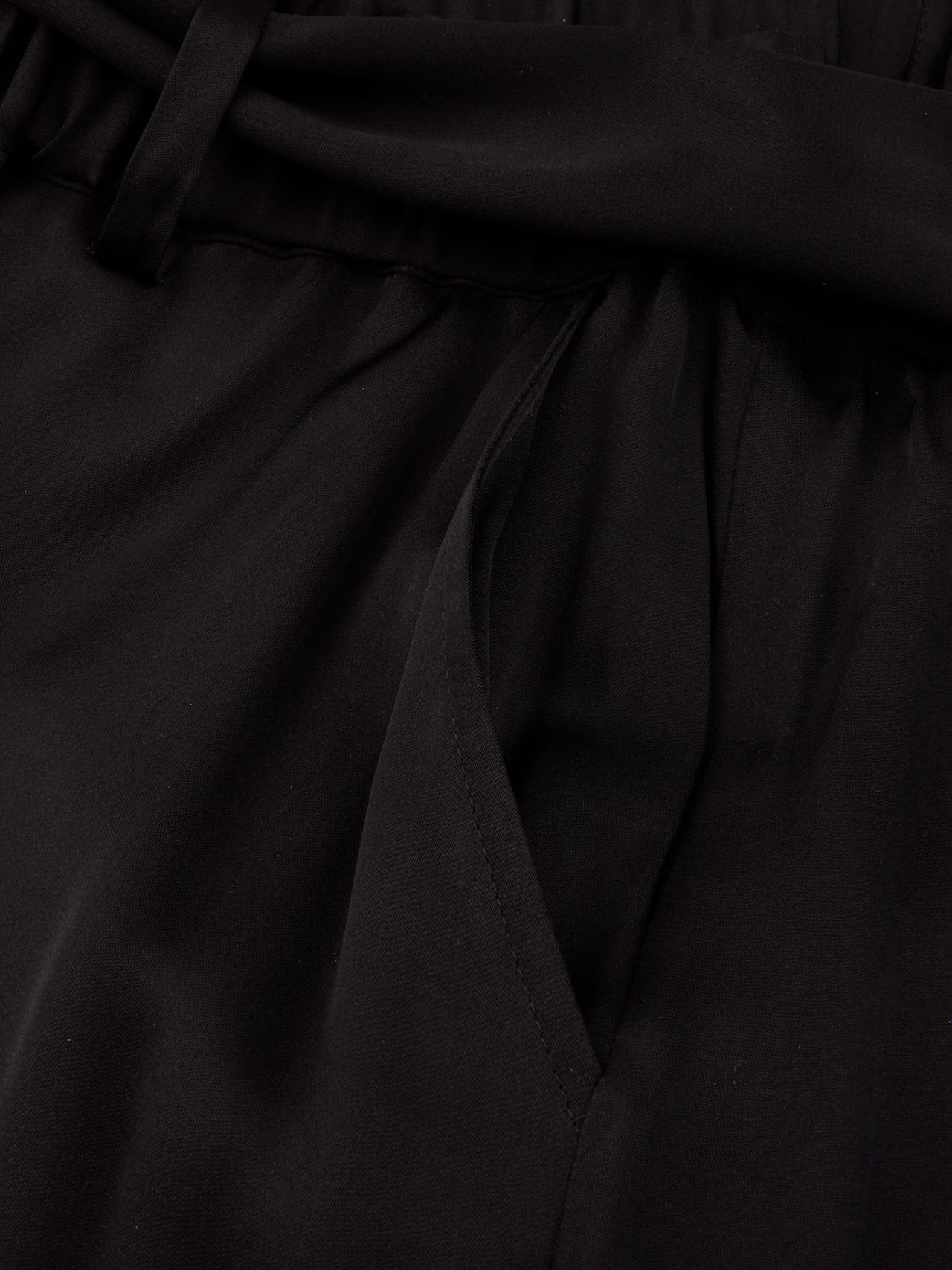 Dessa vida byxor är tillverkade av siden och har ett elasiskt band i midjan samt ett bälte för en mer elegant look.