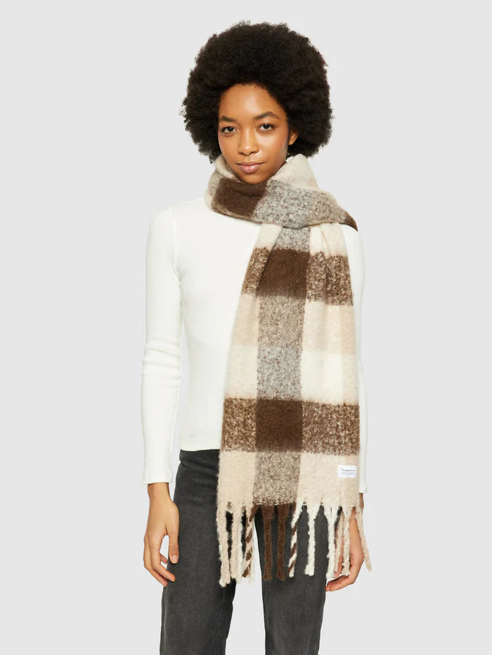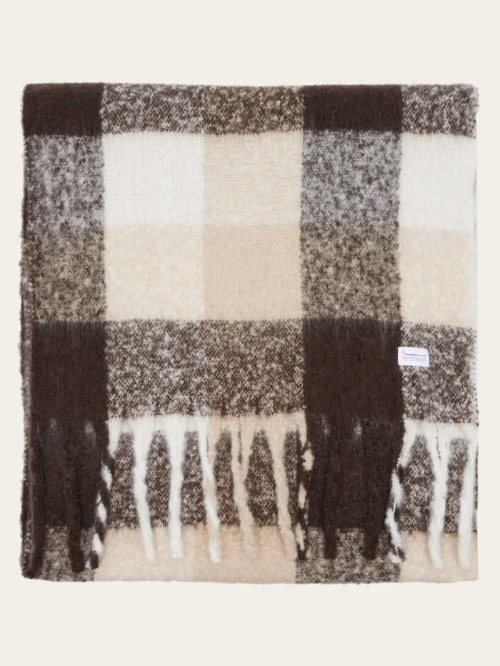Wrap up and discover true comfort with our classic checked scarf. An ideal accessory for cold and windy days. The scarf is made from 100% recycled polyester and feels incredibly soft against the skin. Designed with large checks and fringes.Style no. 4220002