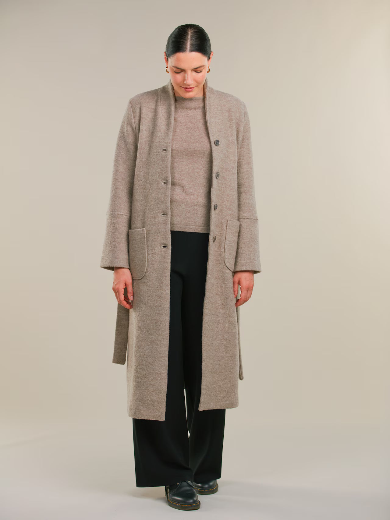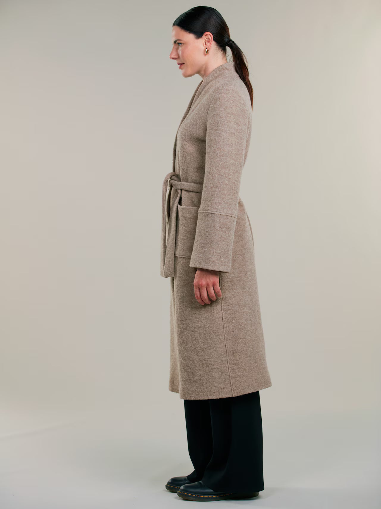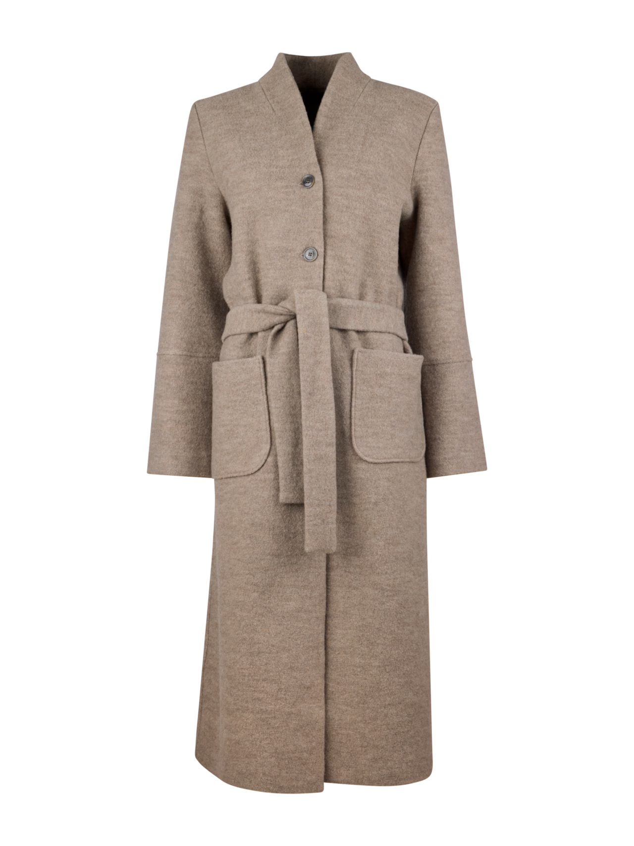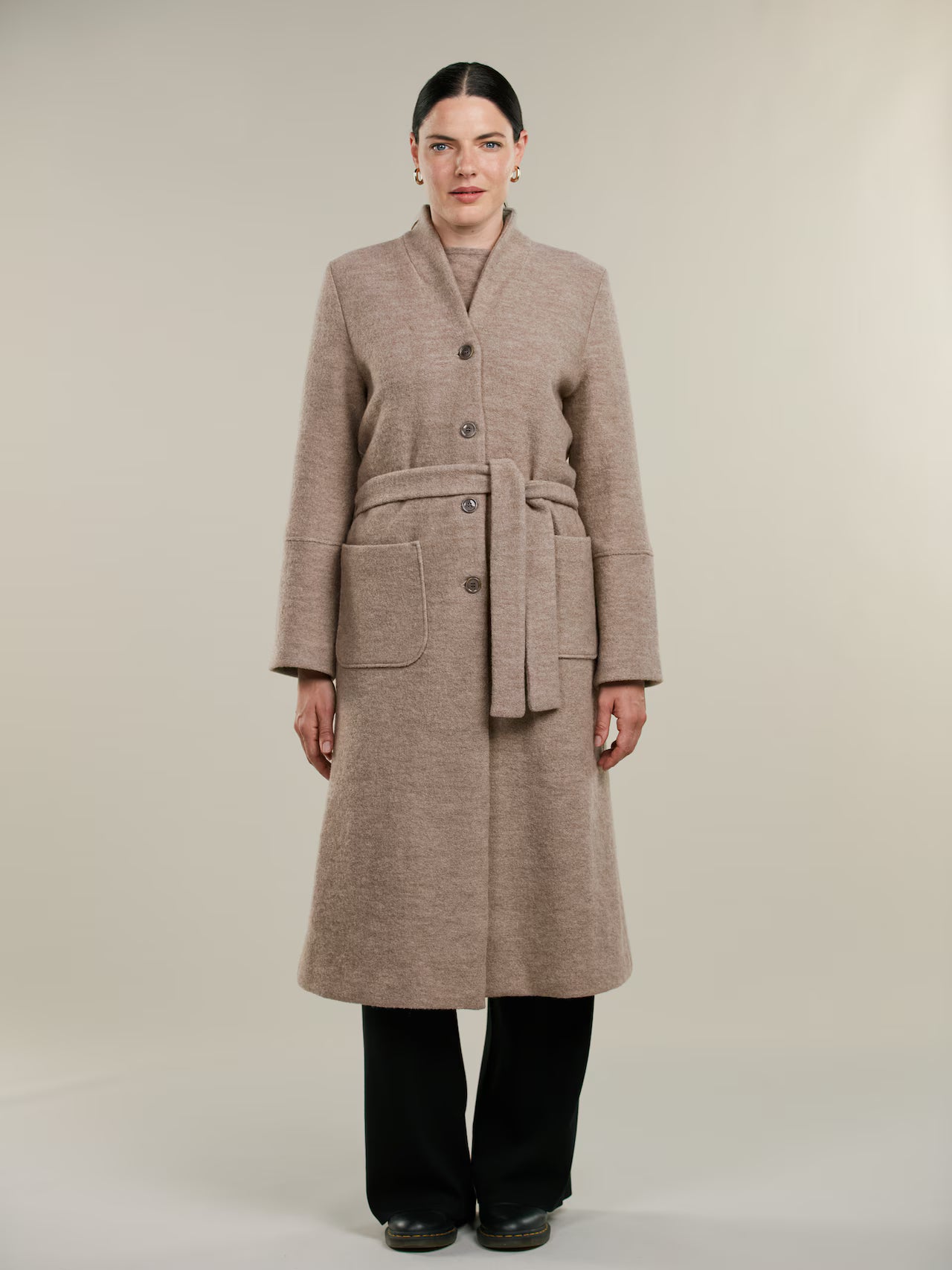 Denna kappa är tillverkad av kokt ull och har en oversized passform. Kappan är helfodrad, har vida ärmar och fickor framtill.