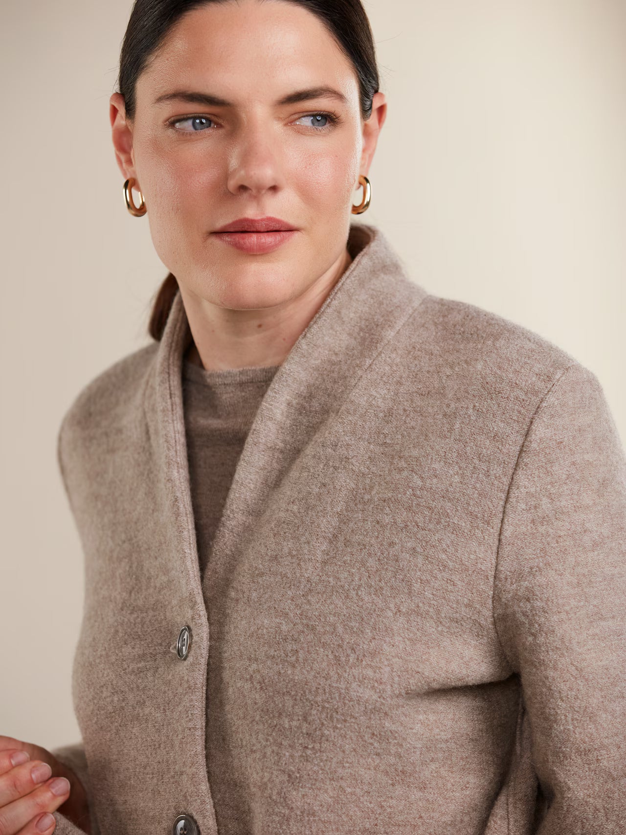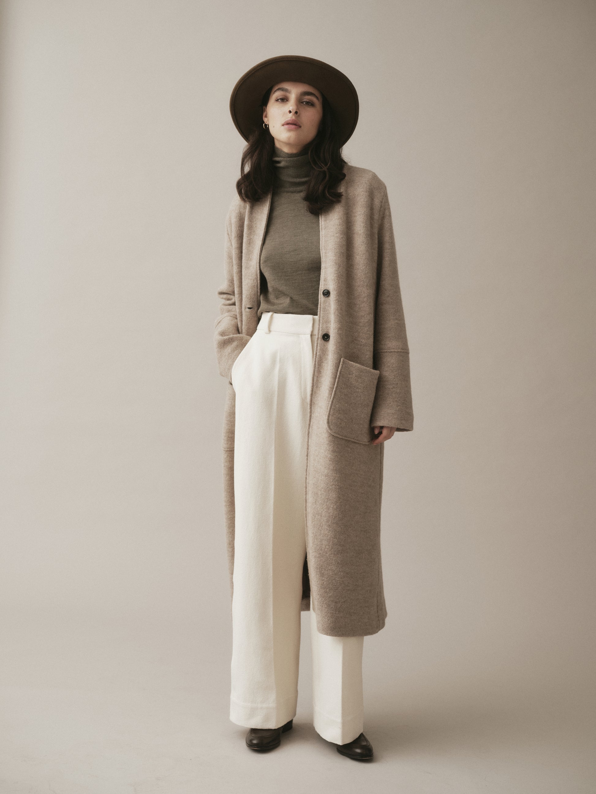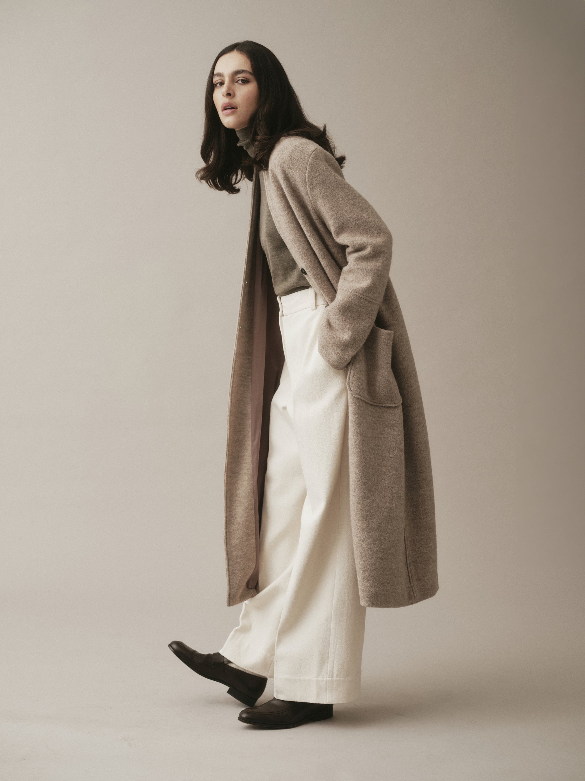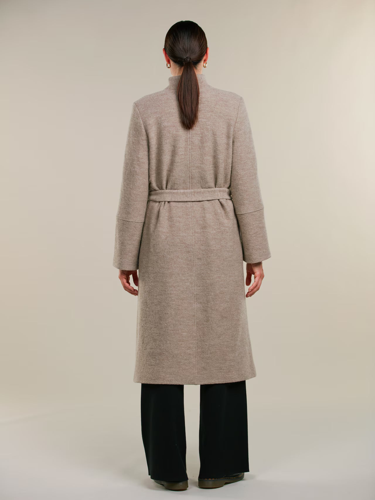 Denna kappa är tillverkad av kokt ull och har en oversized passform. Kappan är helfodrad, har vida ärmar och fickor framtill.