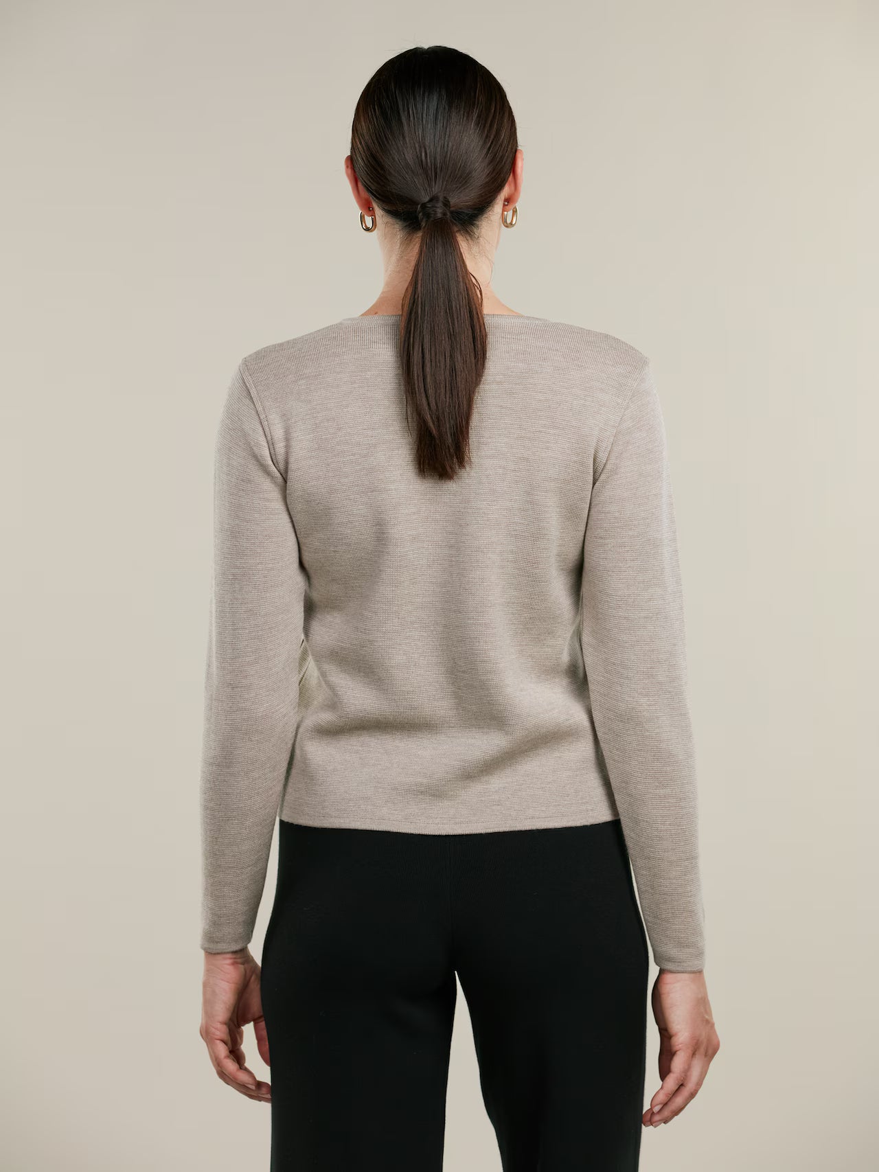 Fintvätt max 30°. Blekning ej tillåten. Torkas liggande. Strykning låg temperatur. Skonsam kemtvätt, perkloretylen (PCE). Merinoull 100%.