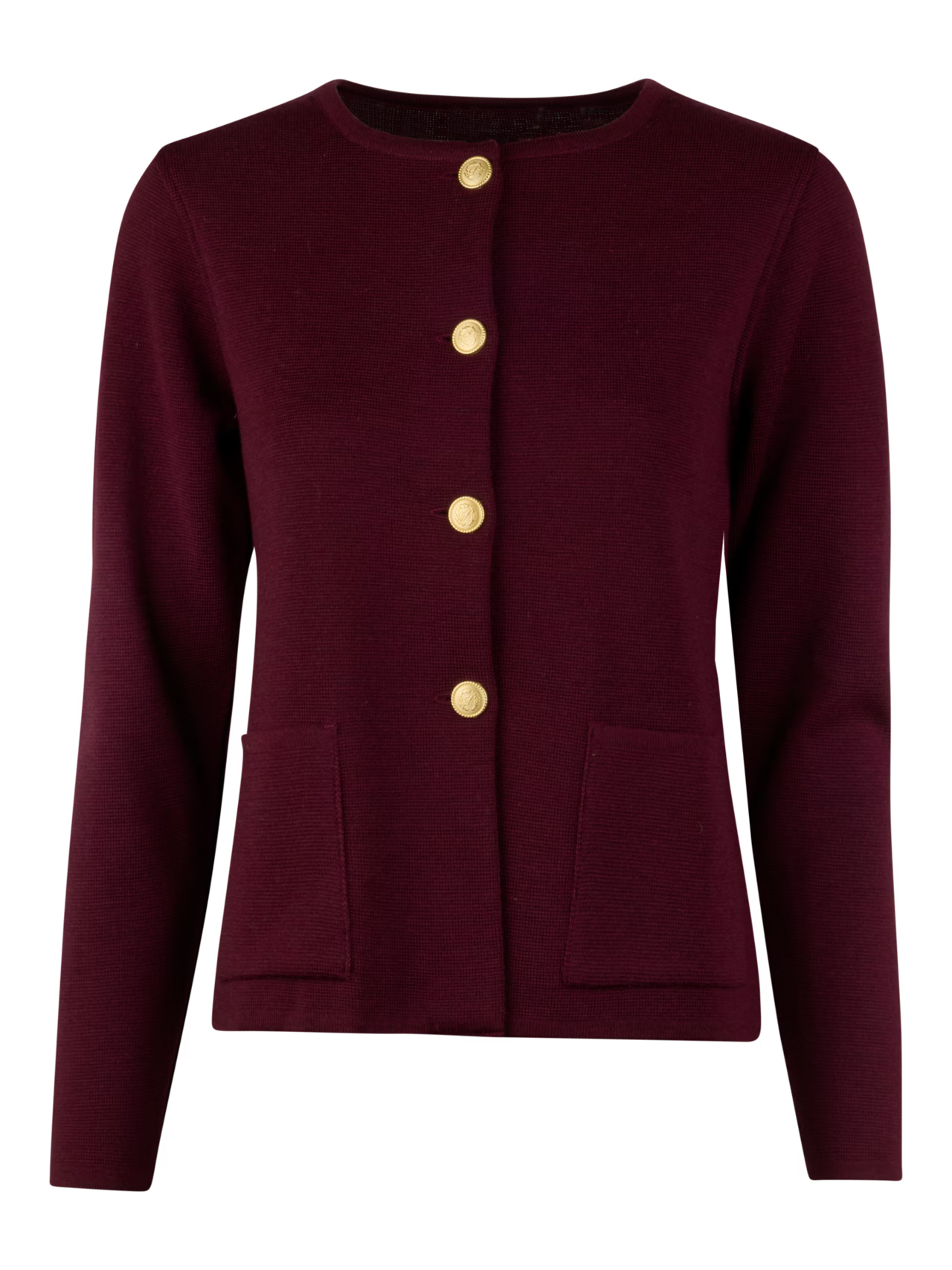 Denna kofta med rak passform är tillverkad av merinoull och har två fickor framtill samt guldiga knappar.