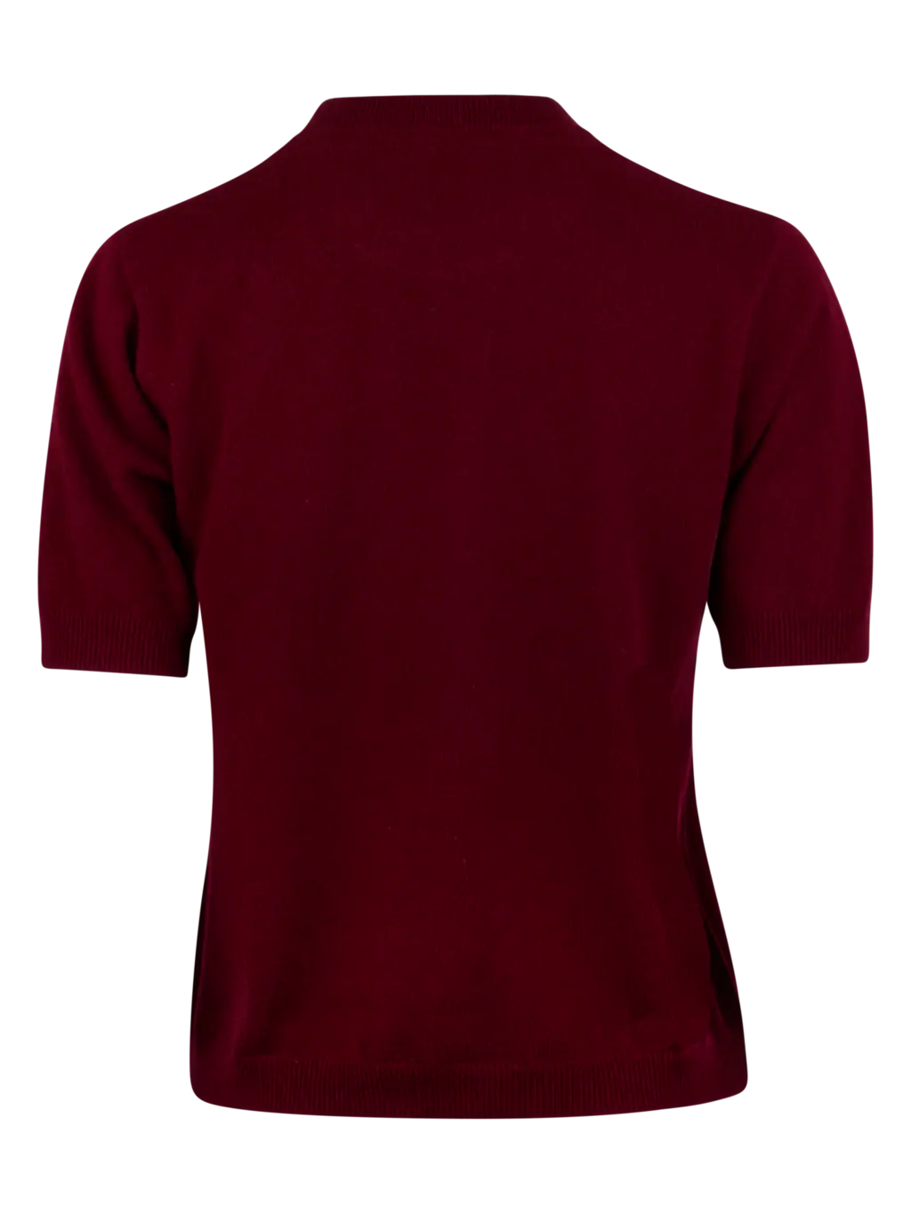 Denna stickade tröja är tillverkad av kashmir och har korta ärmar samt ribbstickade detaljer vid krage, ärm- och plaggslut.