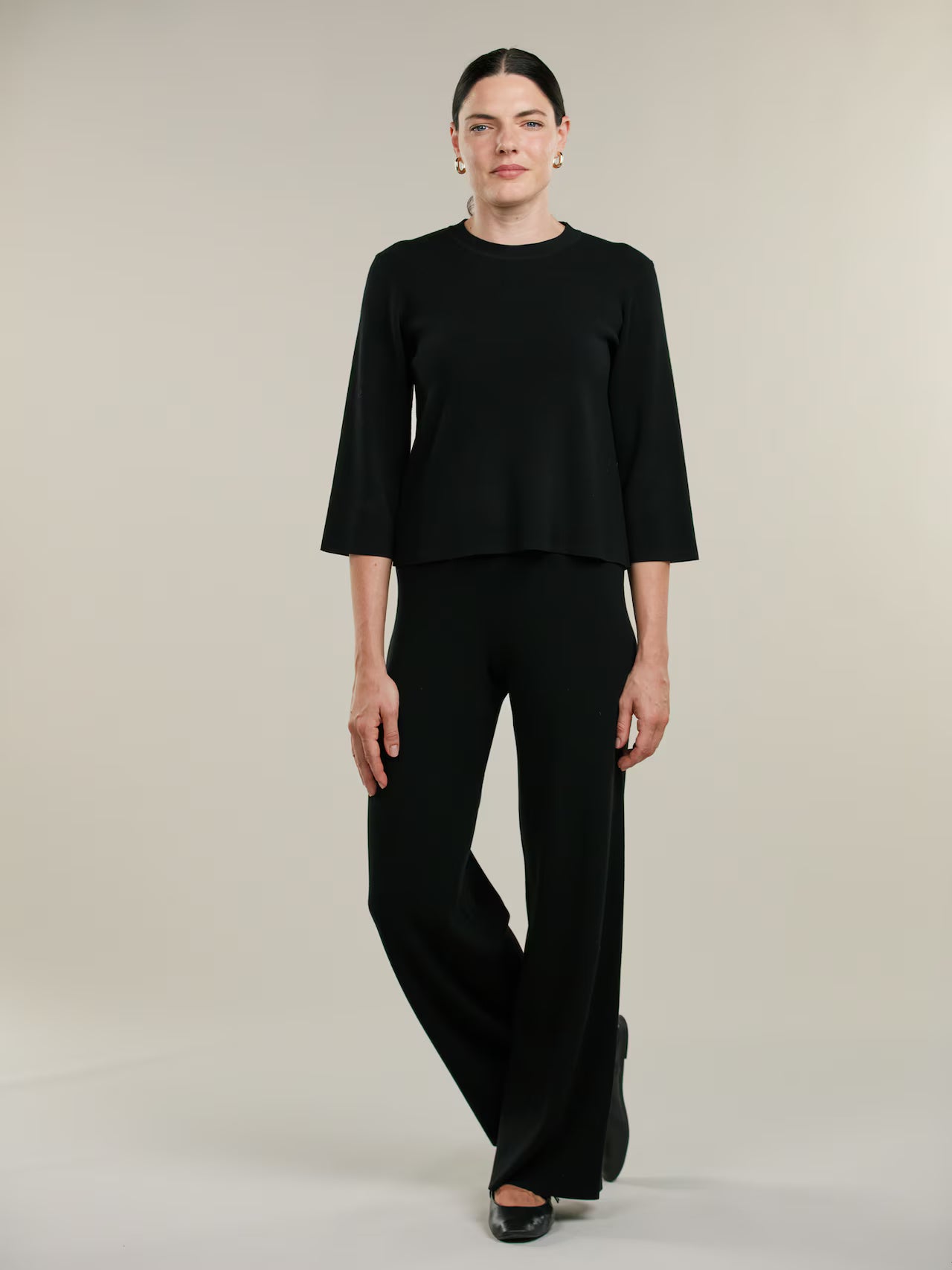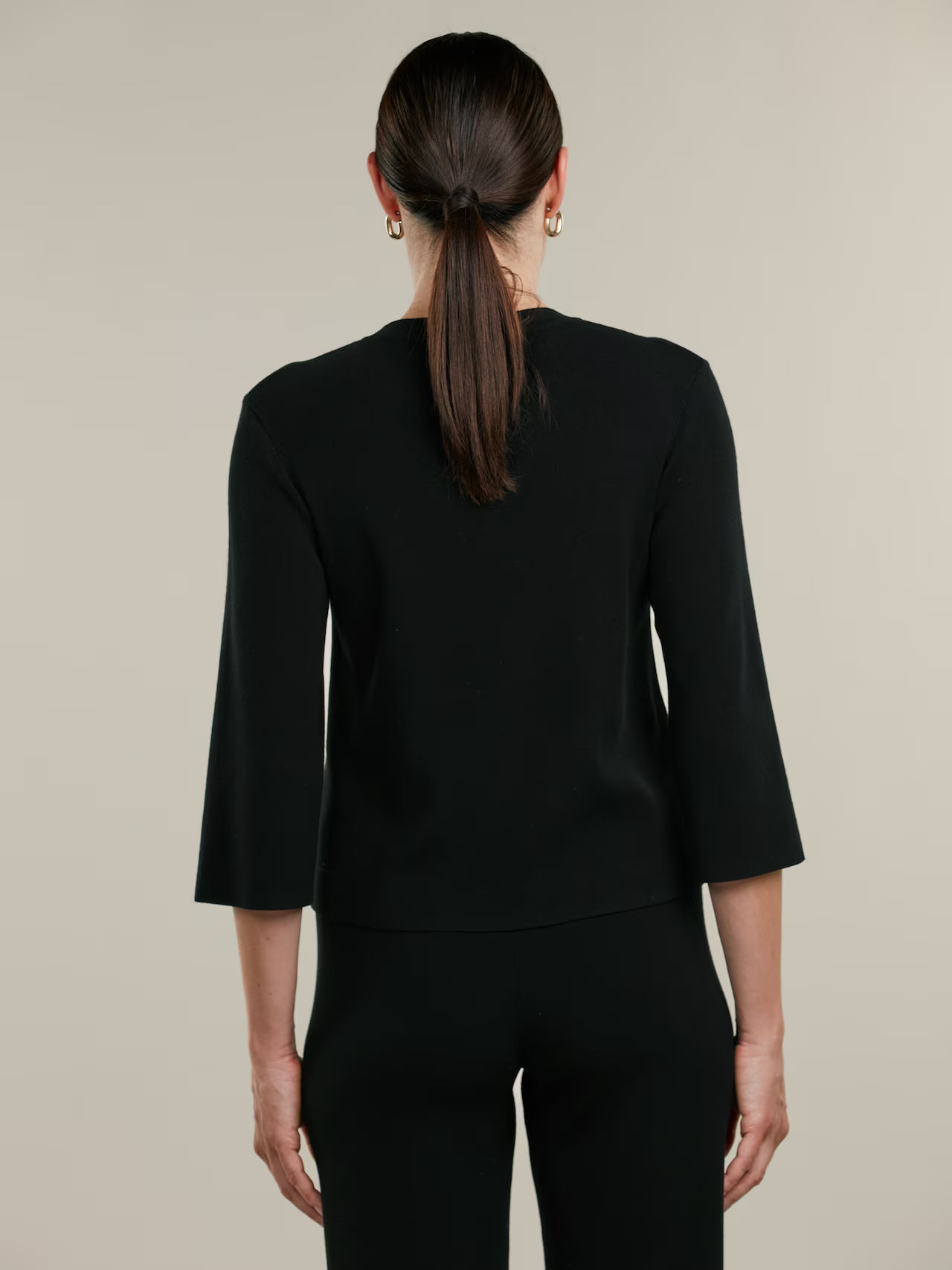 Denna stickade toppen är tillverkad av viskos och polyester och har 3/4 ärmar.