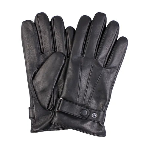 Elegant men’s gloves crafted from premium goat leather with a fine-knit wool lining – a refined blend of functionality, comfort, and timeless design. The smooth leather surface delivers a polished appearance, while the adjustable strap with metal buckle ensures a secure fit at the wrist. A classic accessory that keeps you warm and stylish on cold days – ideal for those who appreciate high-quality materials and well-crafted details.