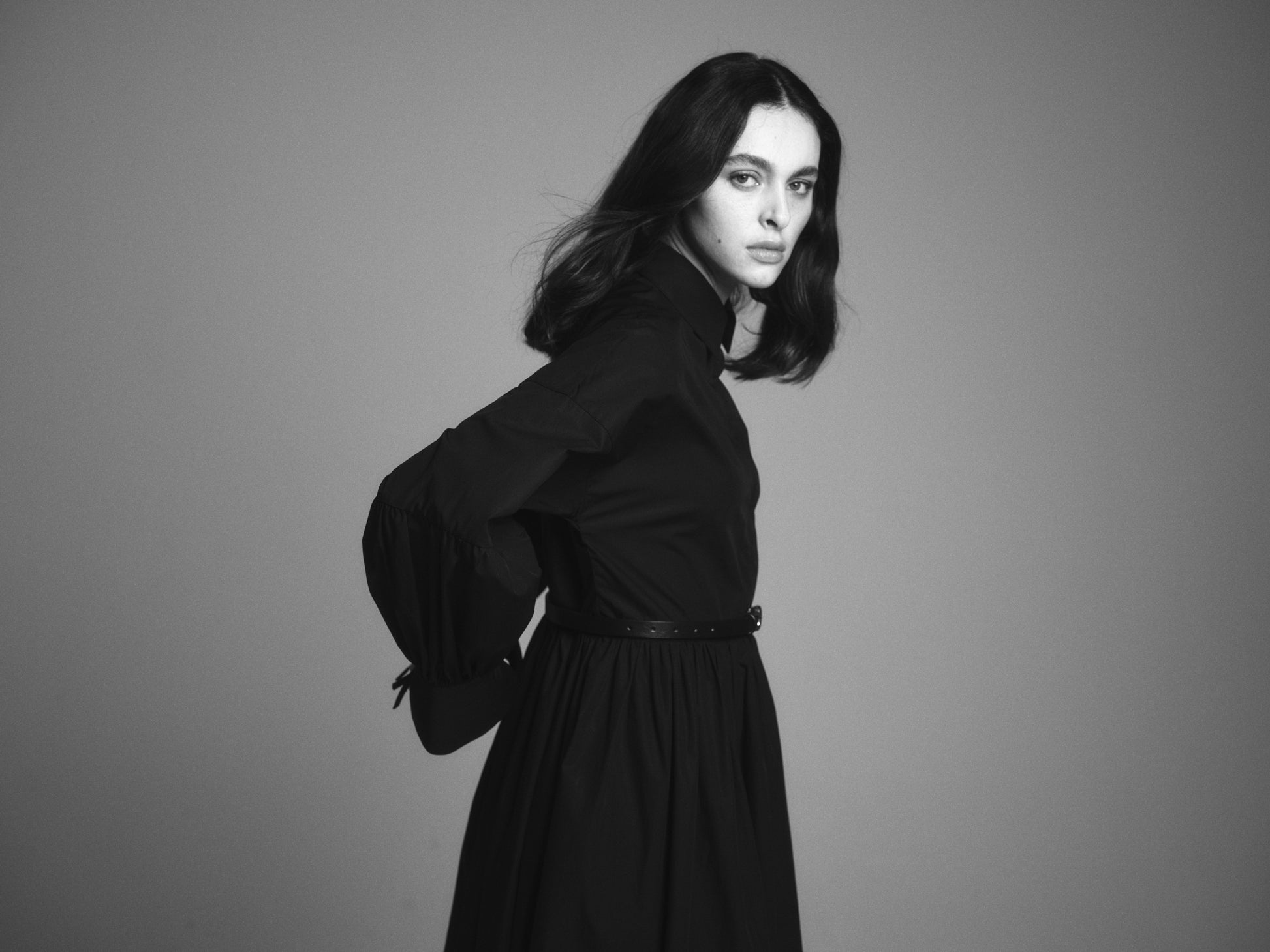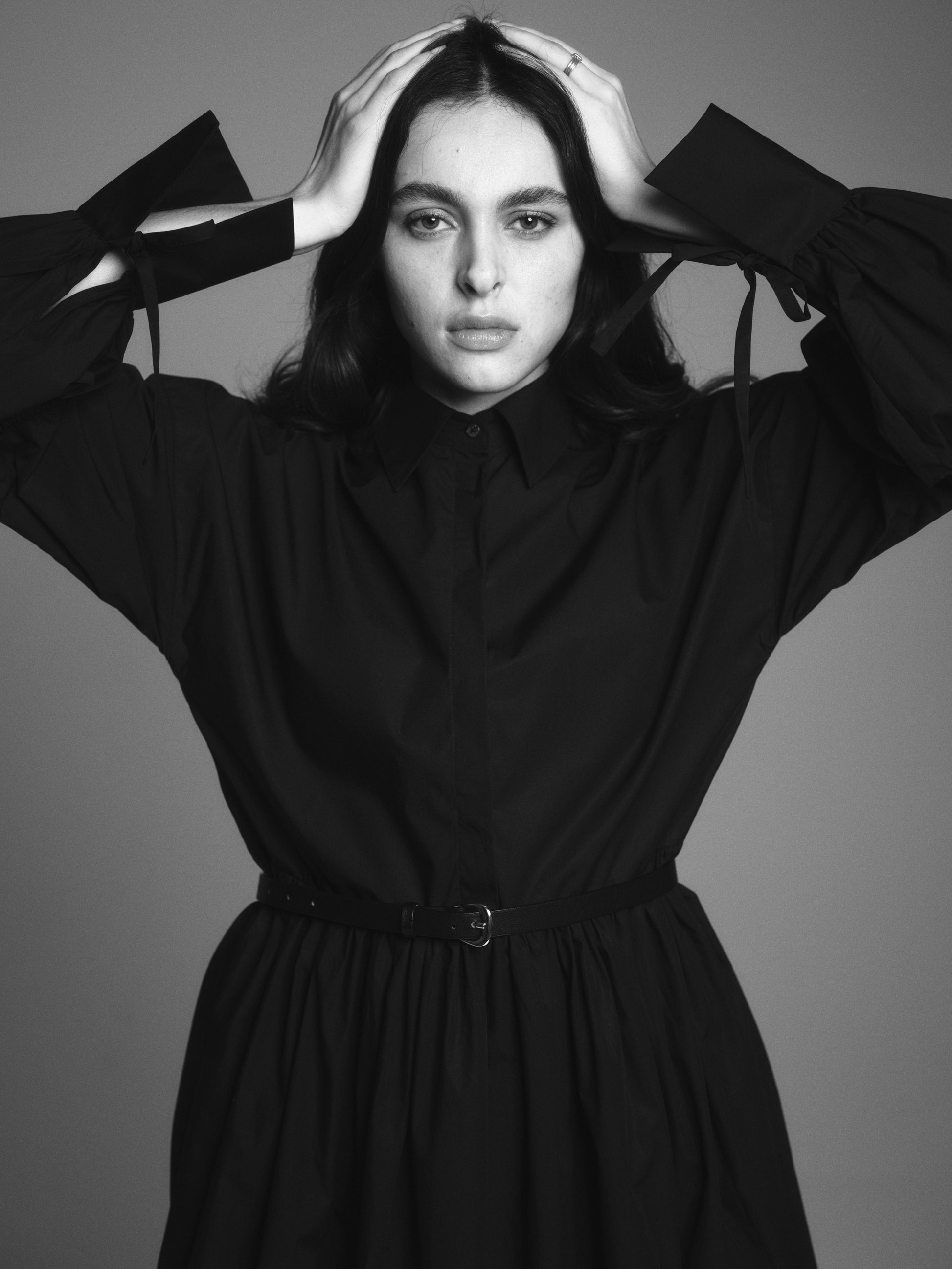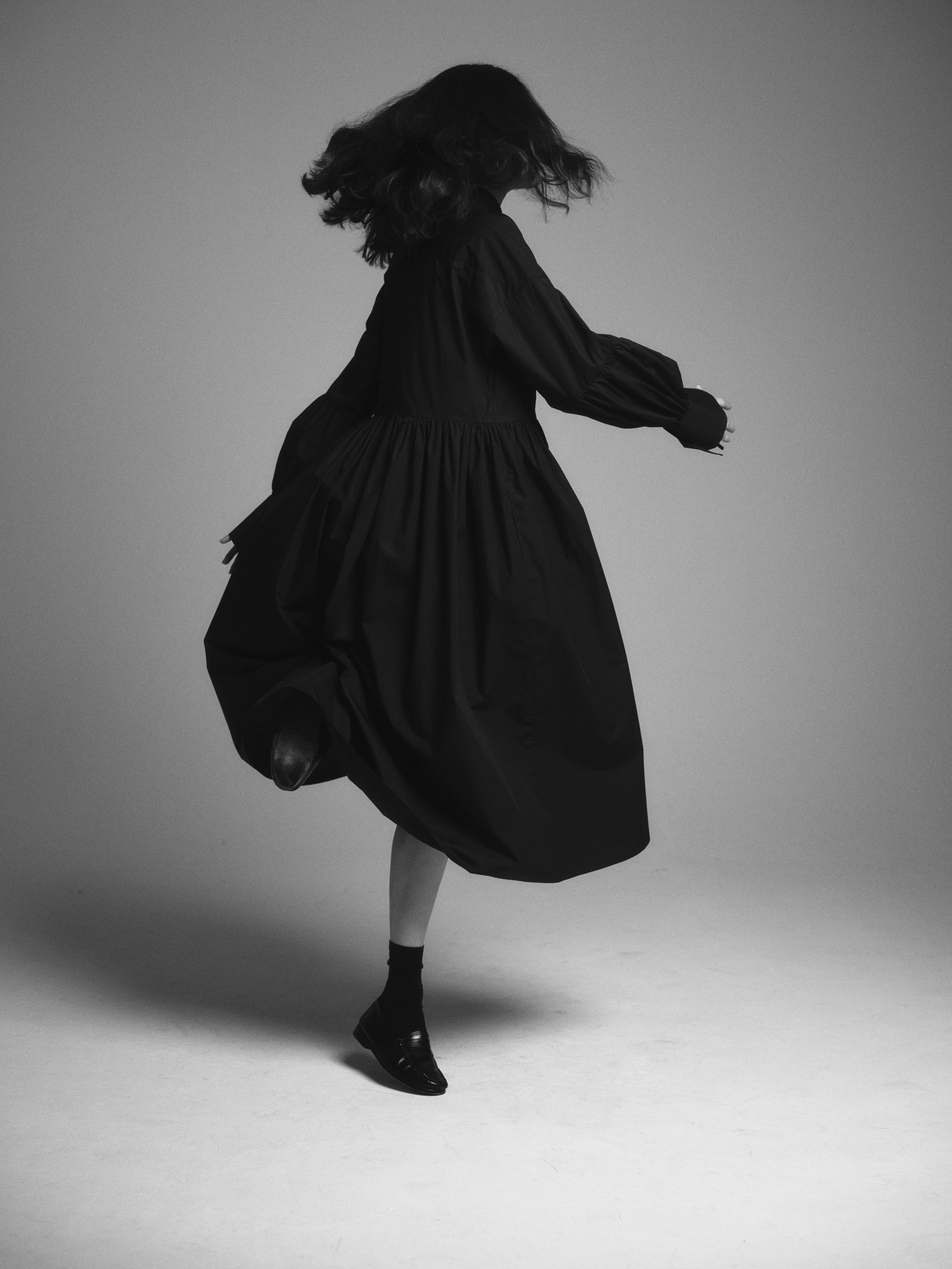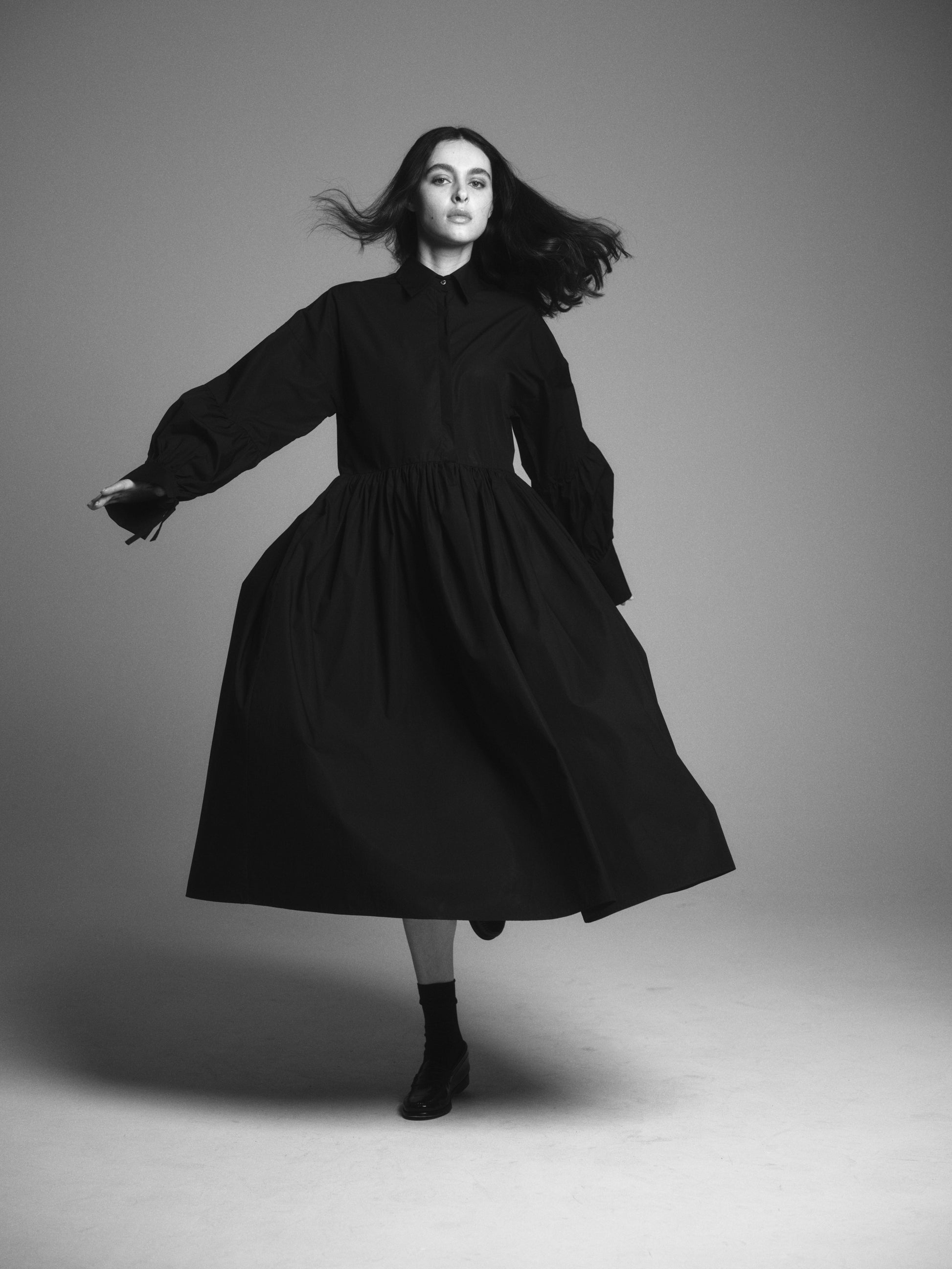 Denna klänning är tillverkad av bomull och har en oversized passform. Klänningen har voluminösa ärmar samt knytning vid manschetterna.