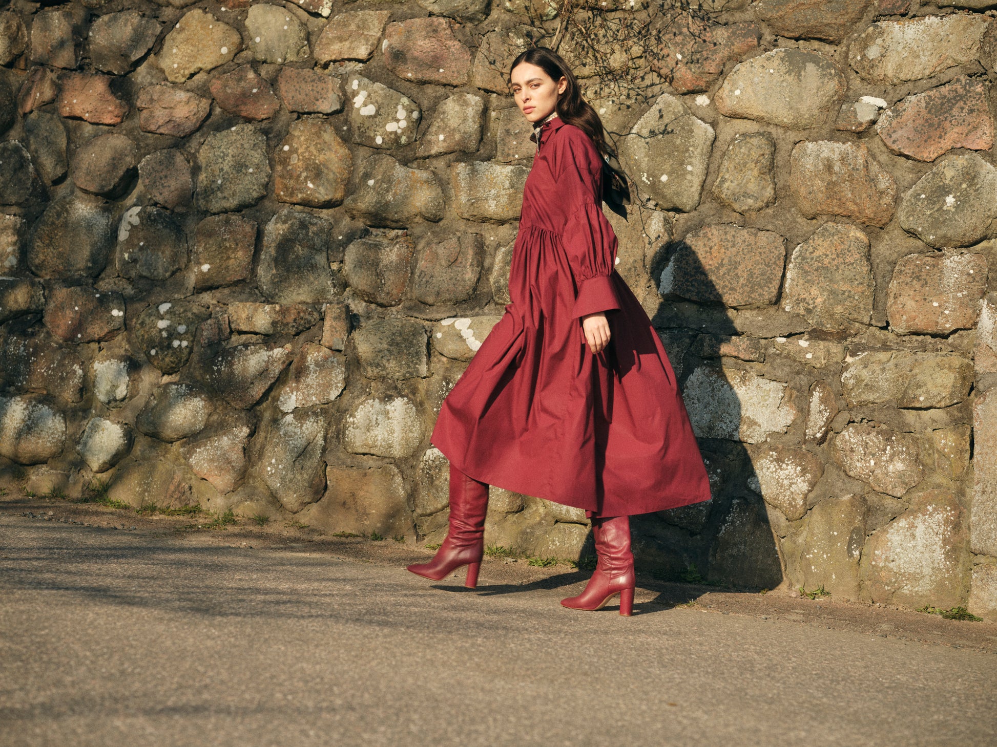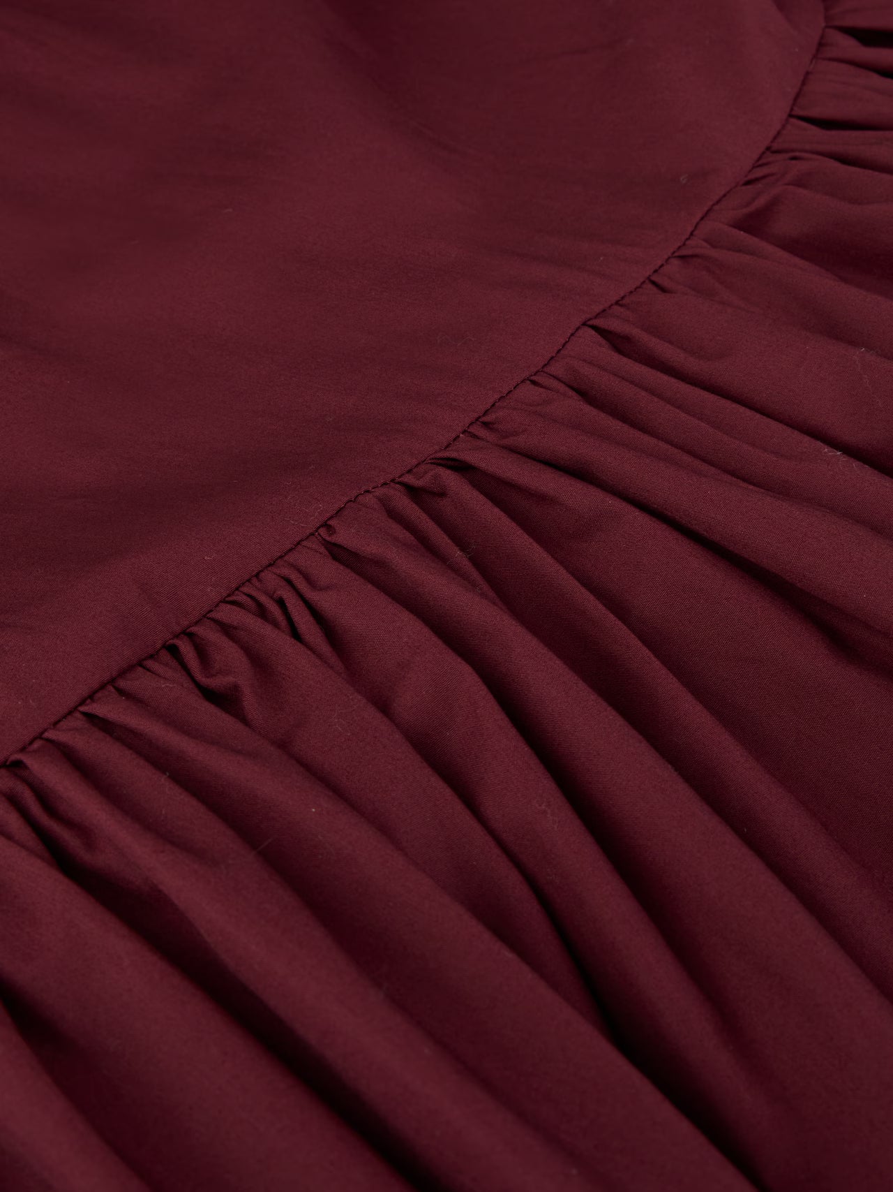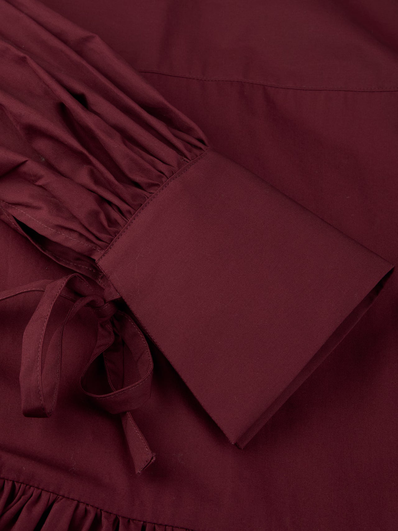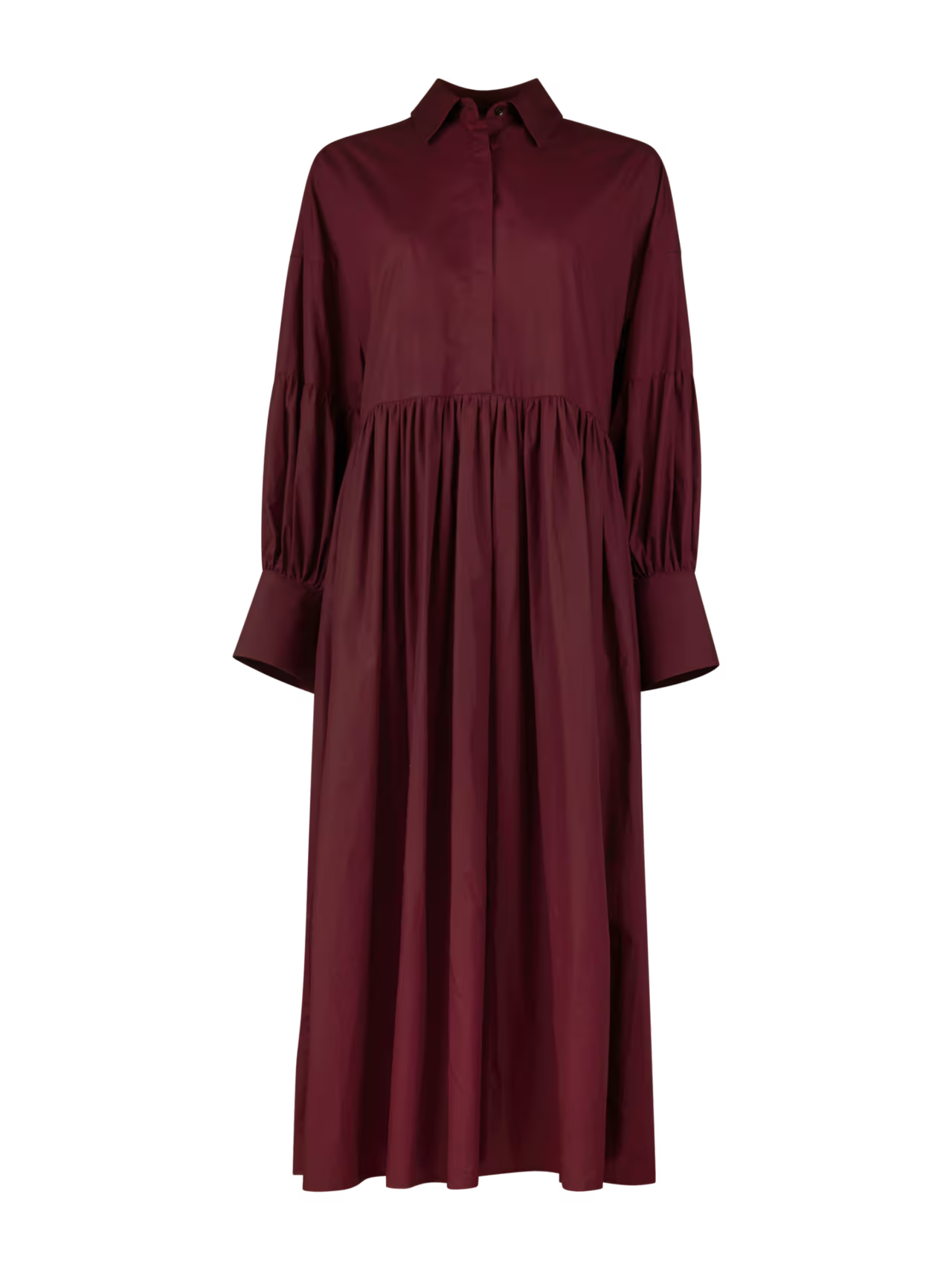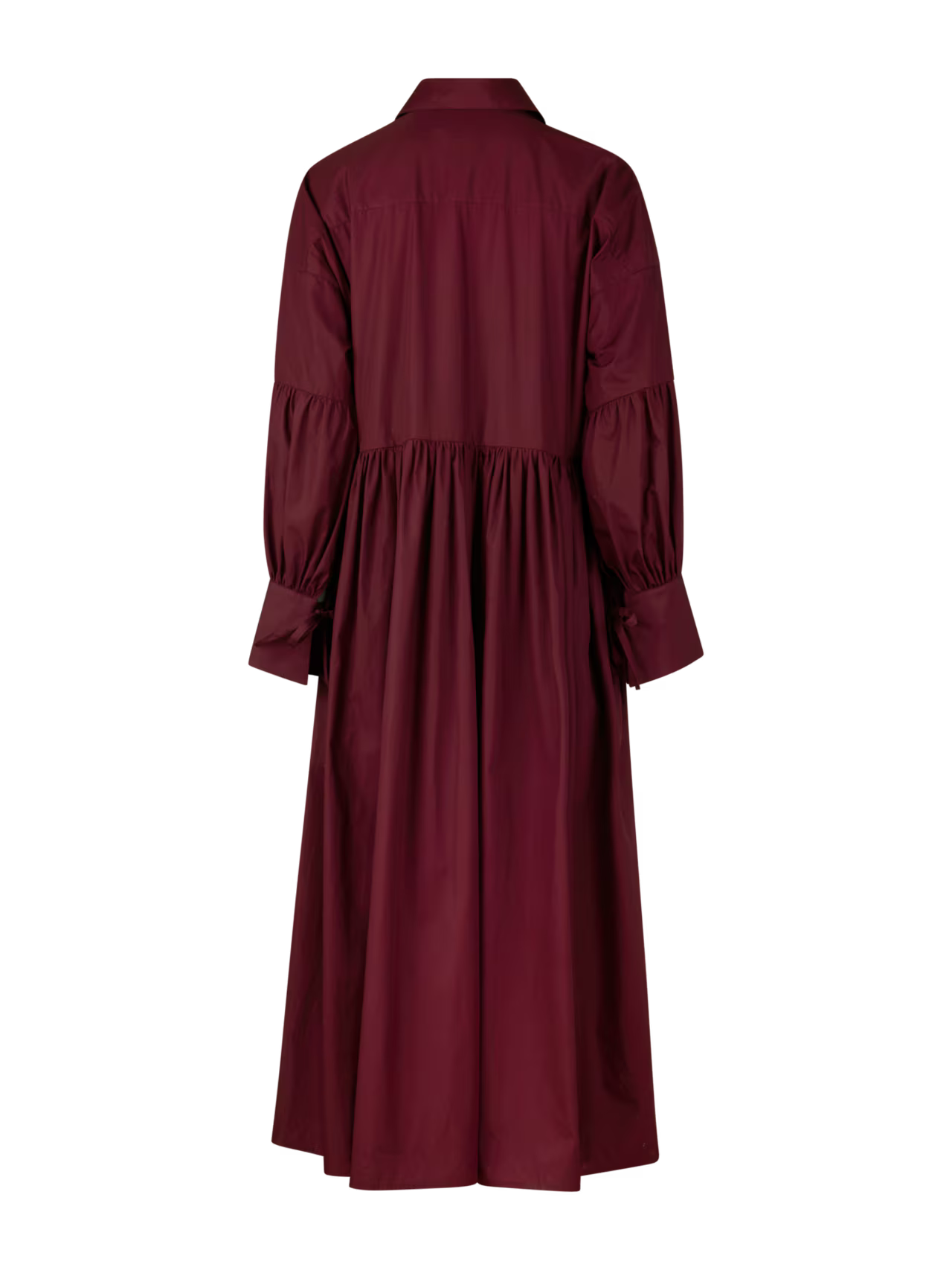 Denna klänning är tillverkad av bomull och har en oversized passform. Klänningen har voluminösa ärmar samt knytning vid manschetterna.