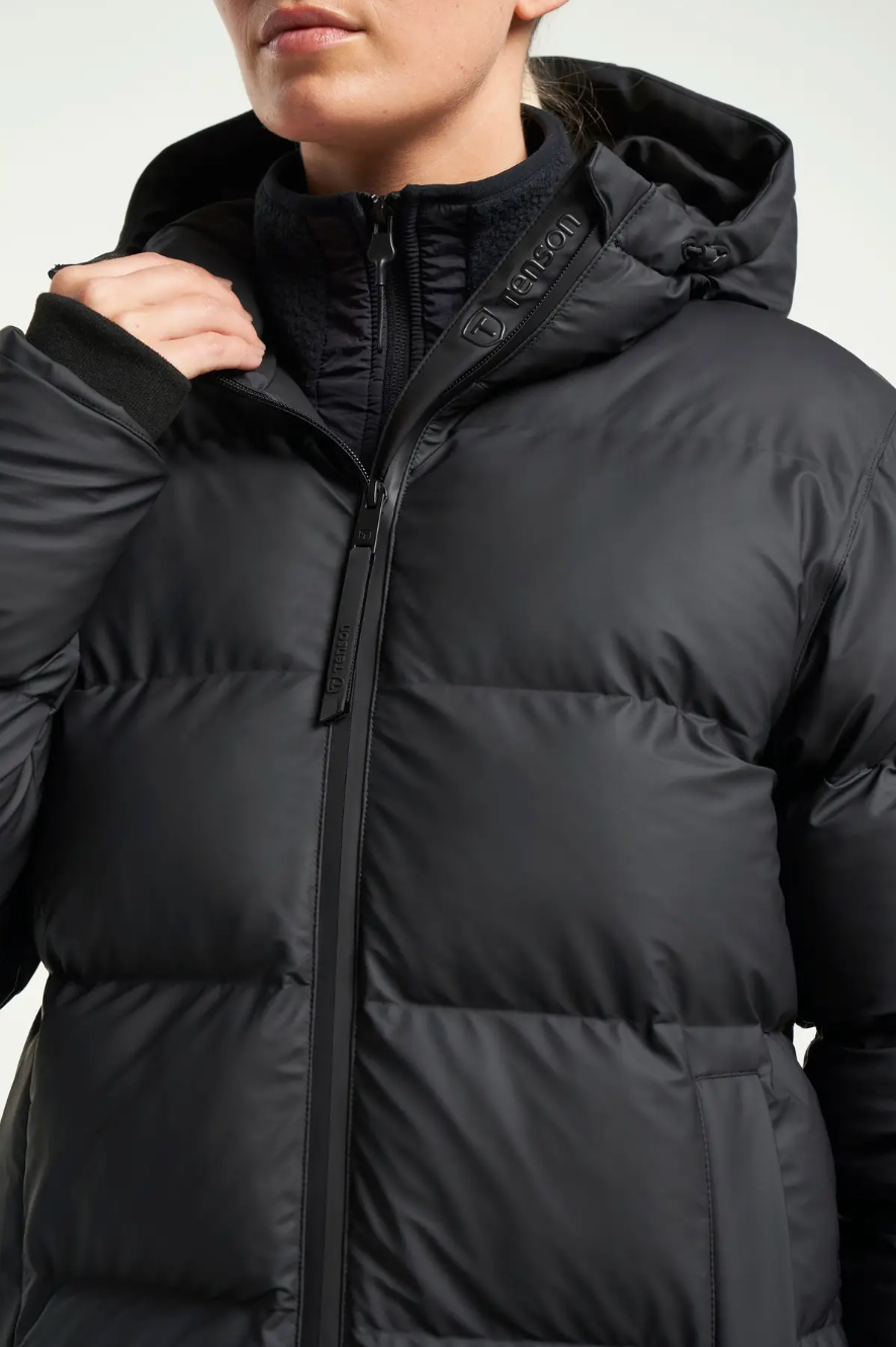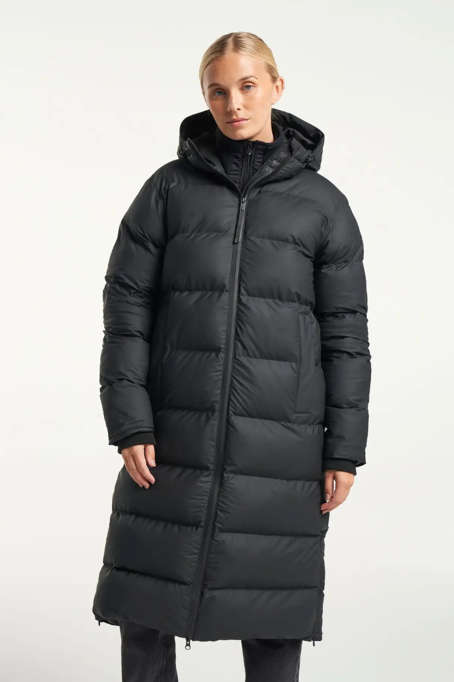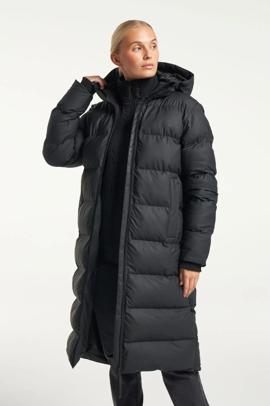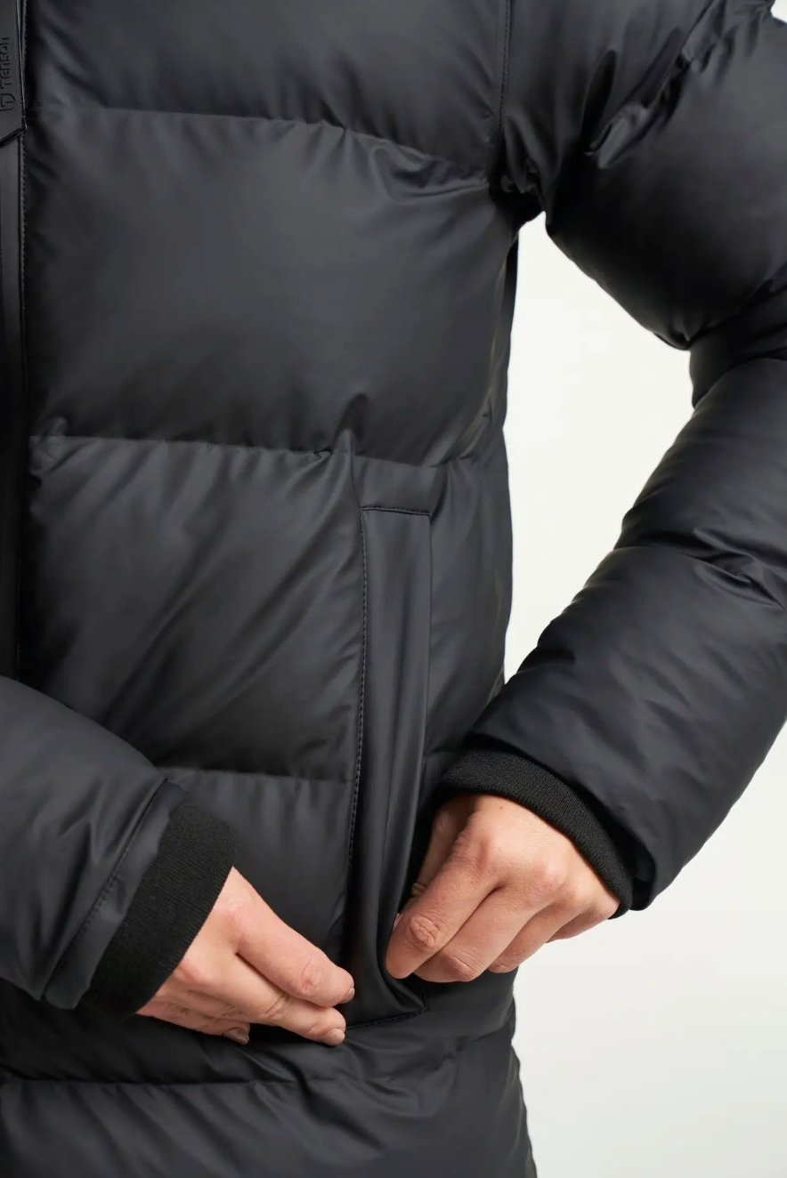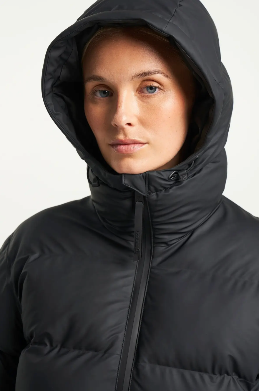 Moderiktig klassisk lång vind- och vattentät puffer-parkas med en rak silhuett. Fodrad med AirPush™ Insulate som är en fjäderlös stoppning som ger lätt vikt och fantastisk isolering för kalla väderförhållanden. Justerbar huva med integrerade stoppers och en hög mjuk krage som skyddar mot den kalla vinden. Rymliga sidofickor med dragkedja och en innerficka med dragkedja för värdesaker. Foder av E-dye polyester och PFC-fri vattenavvisande ytbehandling.